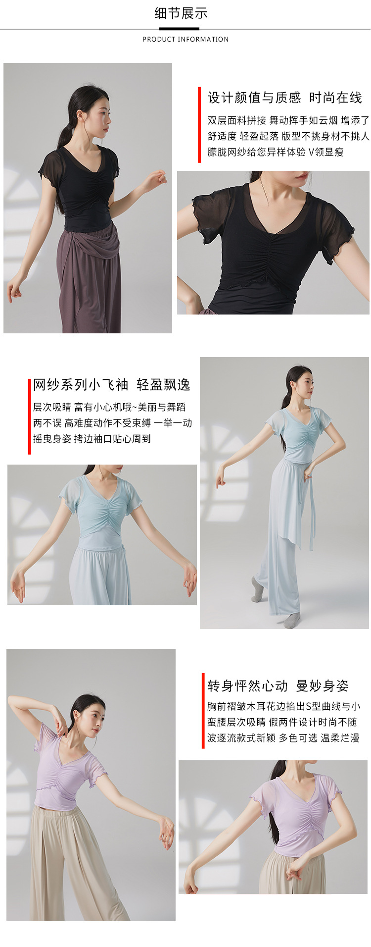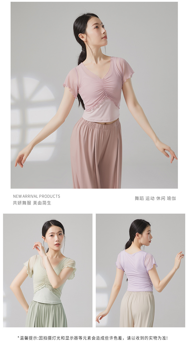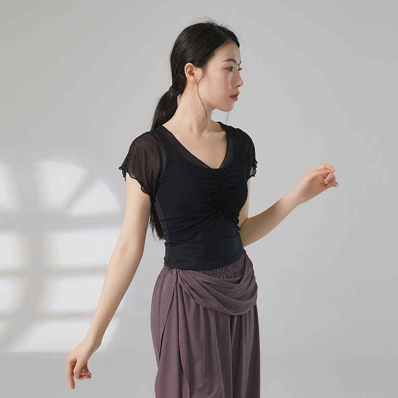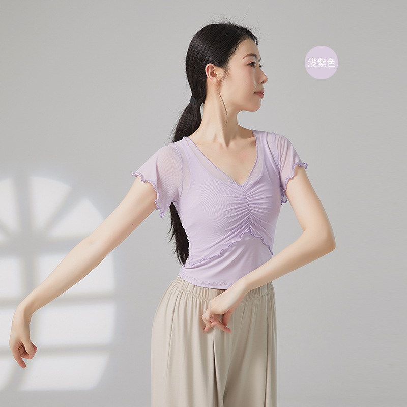 Классический танец с короткими рукавами для взрослых Новый маленький летающий рукав топ женский танец Китай элегантный