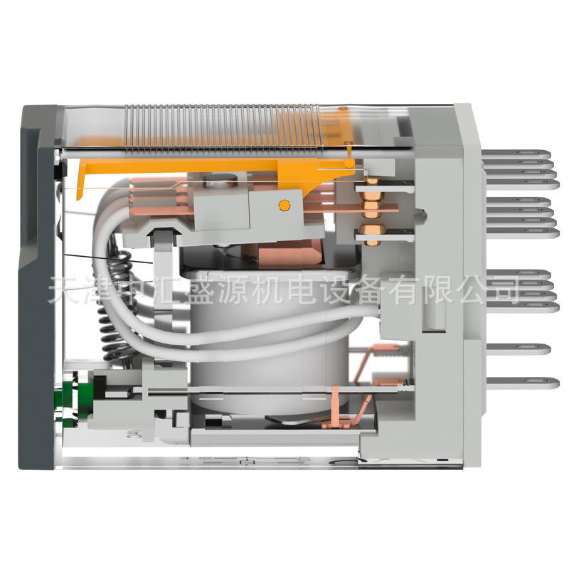中间继电器(intermediate relay):中间继电器通常用来传递信号和同时控制多个电路,也可用来直接控制小容量电动机或其他电气执行元件。中间继电器的结构和工作原理与交流接触器基本相同,与交流接触器的主要区别是触点数目多些,且触点容量小。在选用中间继电器时,主要考虑电压等级和触点数目。
