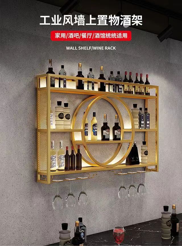 Настенная винная полка-витрина для бара и ресторана, настенный барный прилавок, винная стойка из кованого железа, настенный стеллаж для хранения, настенный винный шкаф в стиле легкой роскоши