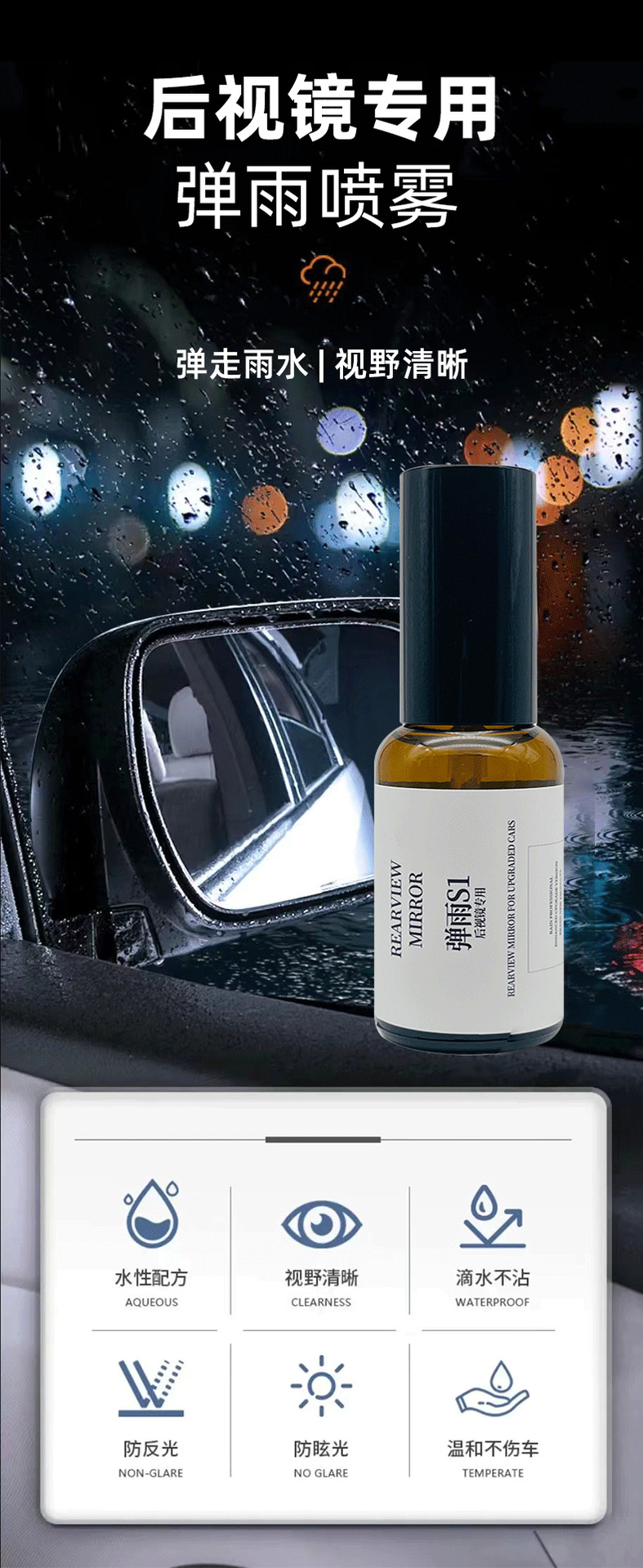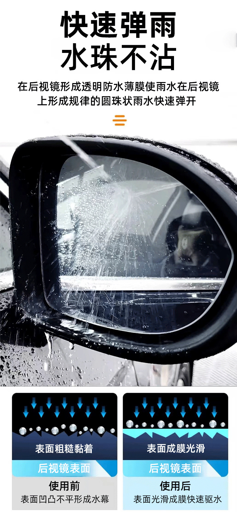 【Прямые поставки от производителя】Спрей для защиты зеркал заднего вида от дождя, предотвращает прилипание капель дождя и воды к обзору, очищающий спрей для летнего использования.