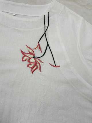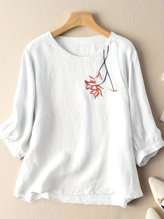2023 хризантемы вышитая лодка с круглым вырезом повседневная рубашка