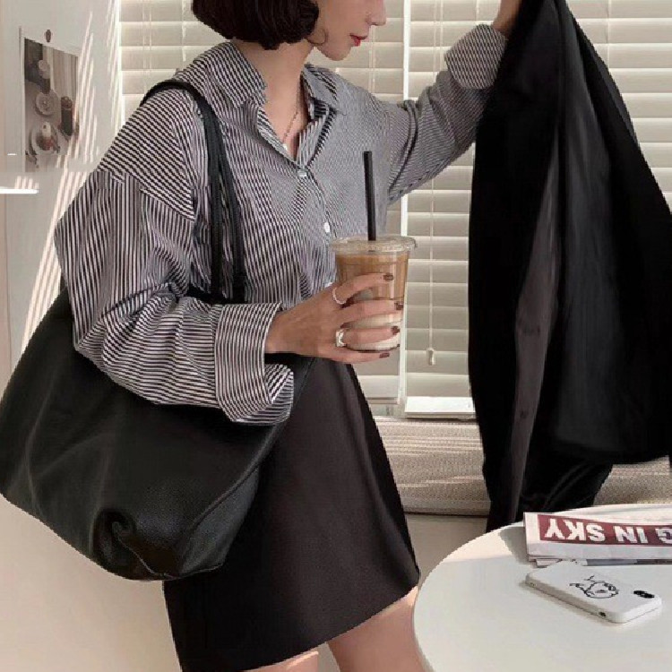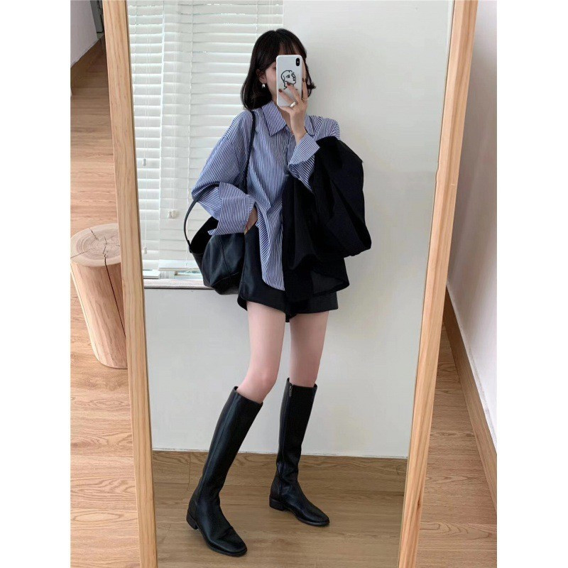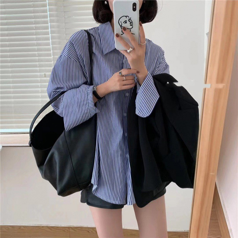 2023 Южная Корея Донгдэмун полосатая рубашка женская рубашка с длинными рукавами рыхлый стек, дикая синяя полосатая рубашка весна