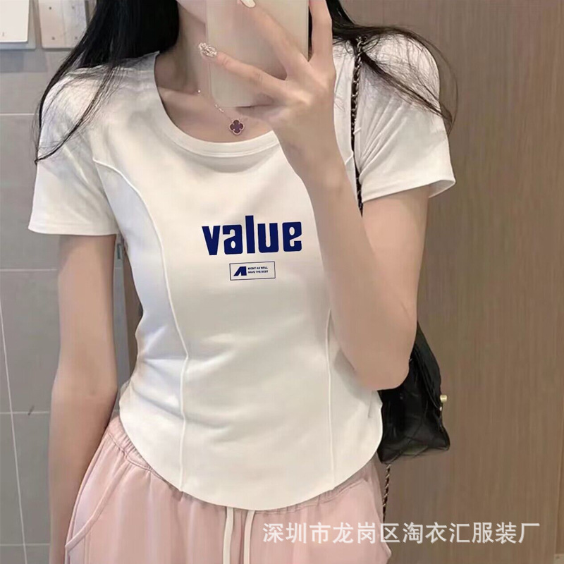 Чистый ветер рыбные кости с коротким рукавом футболка женская новая американская горячая девушка тонкая и тонкая женская летняя премиум-класса ins