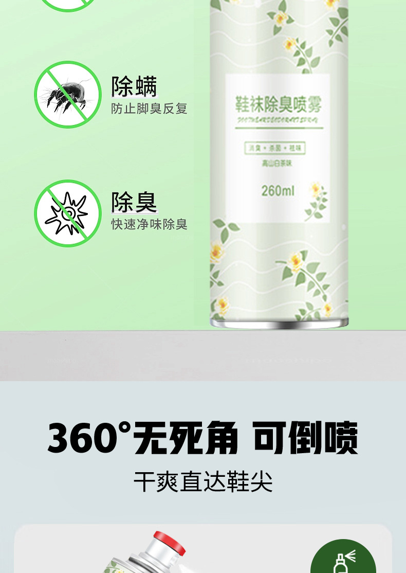 Дезодорант для обуви и носков со вкусом альпийского белого чая 260мл; Дезодорант для обуви и носков White Peach Oolong 260 мл; Дезодоратор для обуви и носков с ароматом гардении.; Дезодорирующий и очищающий спрей для обуви и носков.