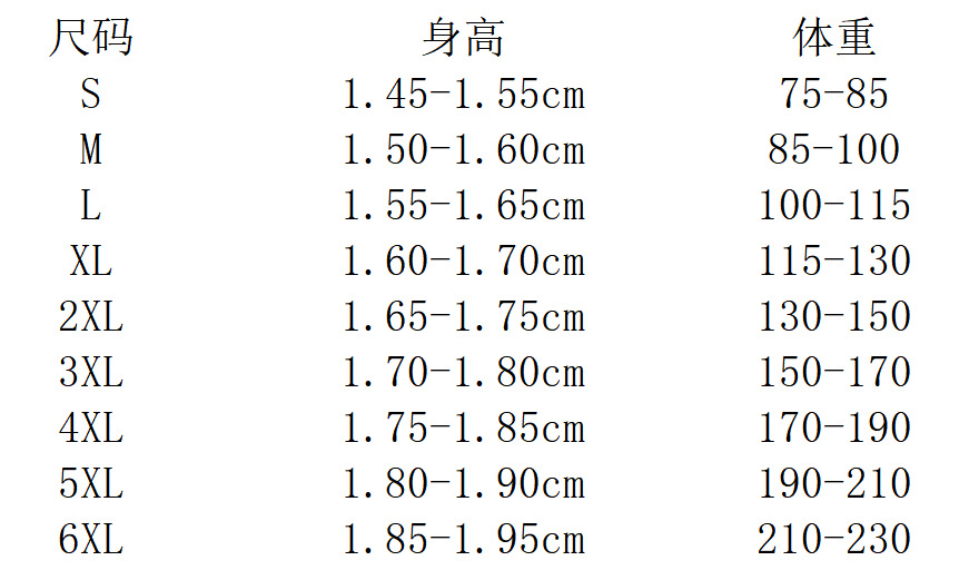 S; M; L; XL; 2XL; 3XL; 4XL; 5XL