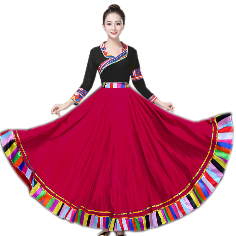 Тибетский танцевальный костюм, купол, юбка, юбка, юбка, платье, платье, платье, платье, платье, тибетское шоу, женская народная танцевальная одежда