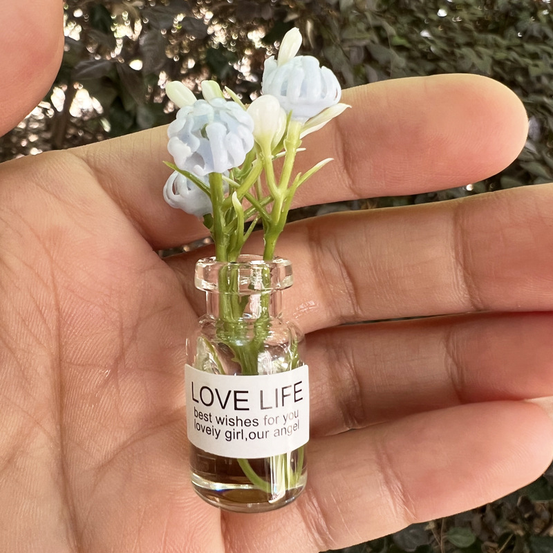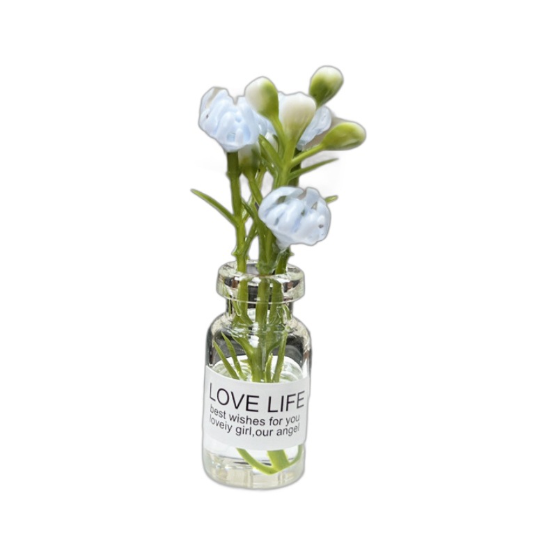 手工迷你插花模型,瓶子高3cm总高6cm,贴纸配好了自己贴哦。袋装重7.1g