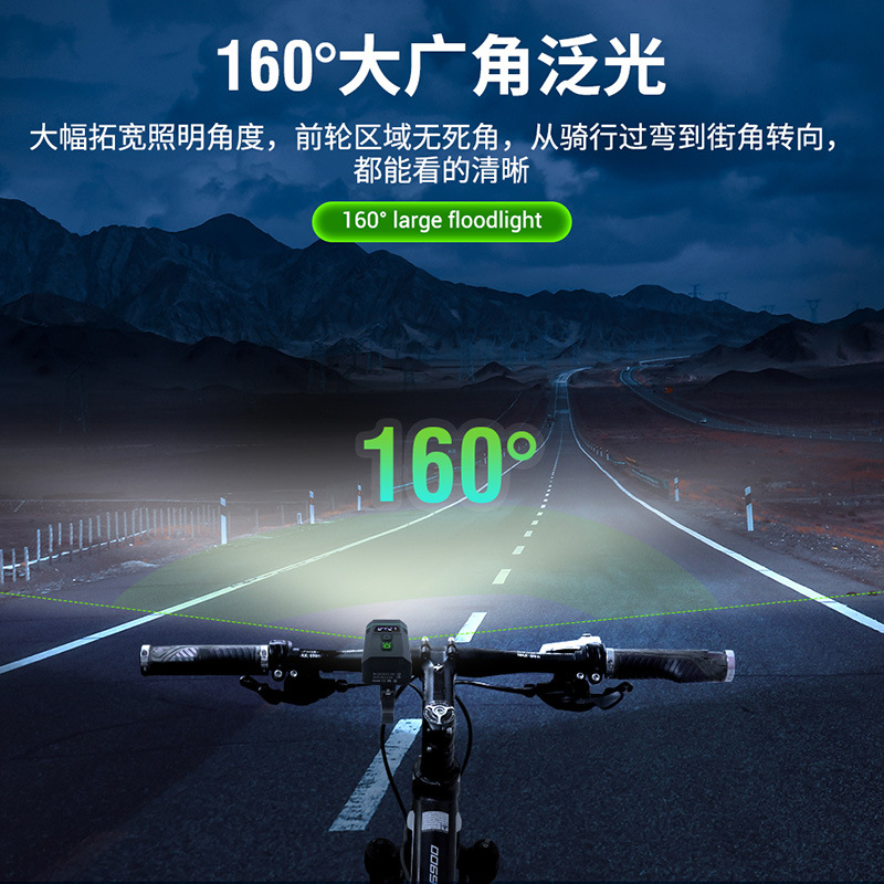 全套配置:自行车灯+支架+充电线+盒子+说明书