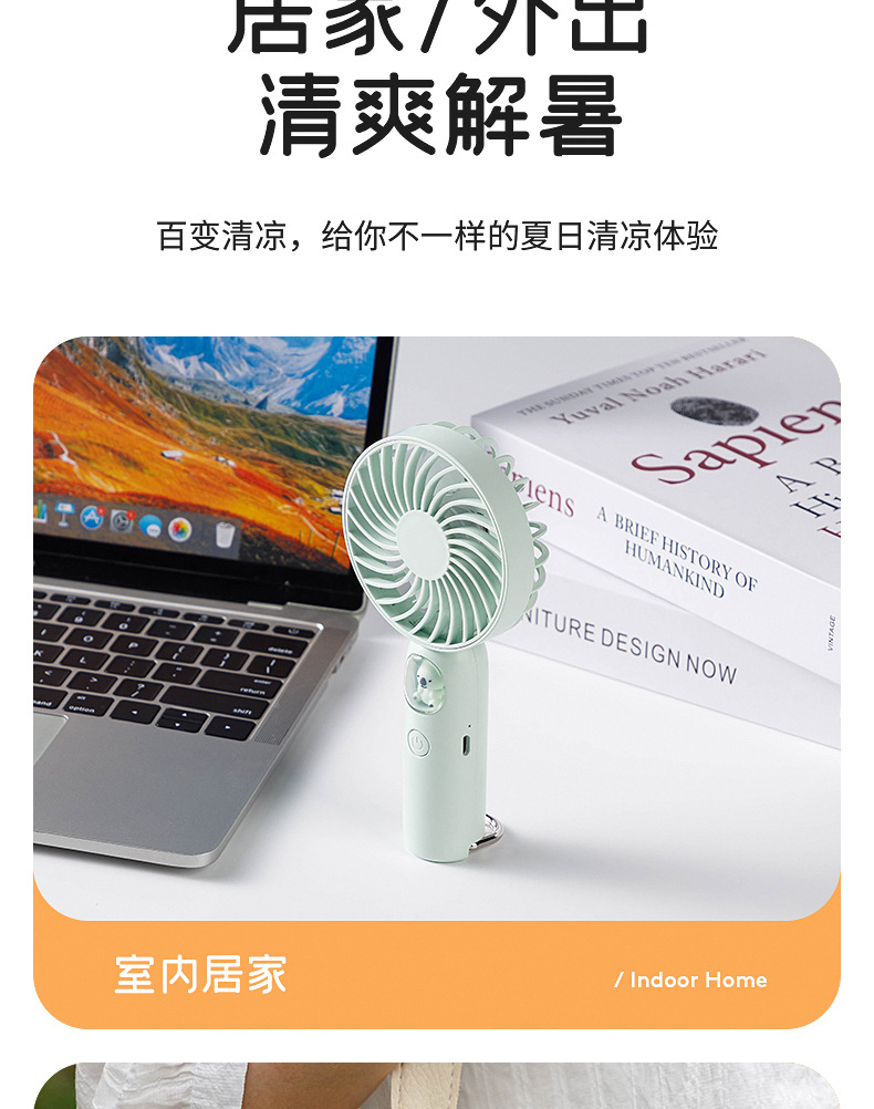 Новый портативный маленький вентилятор USB бесшумный большой ветер открытый карабин Студенческий карман портативный мини-вентилятор