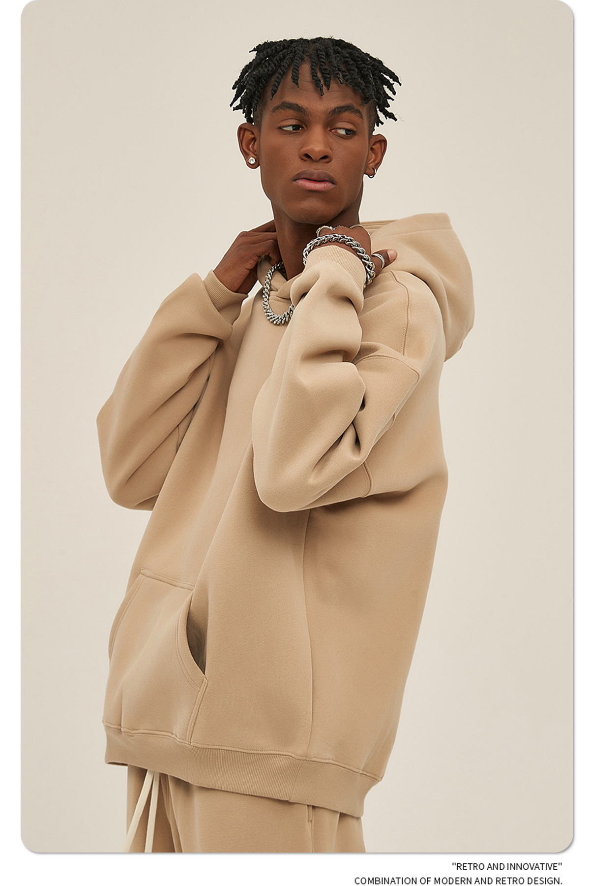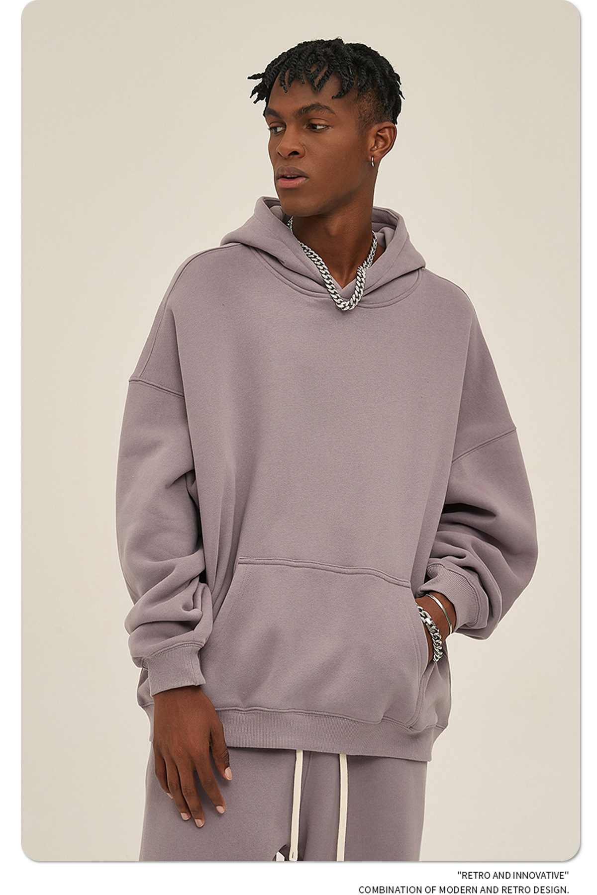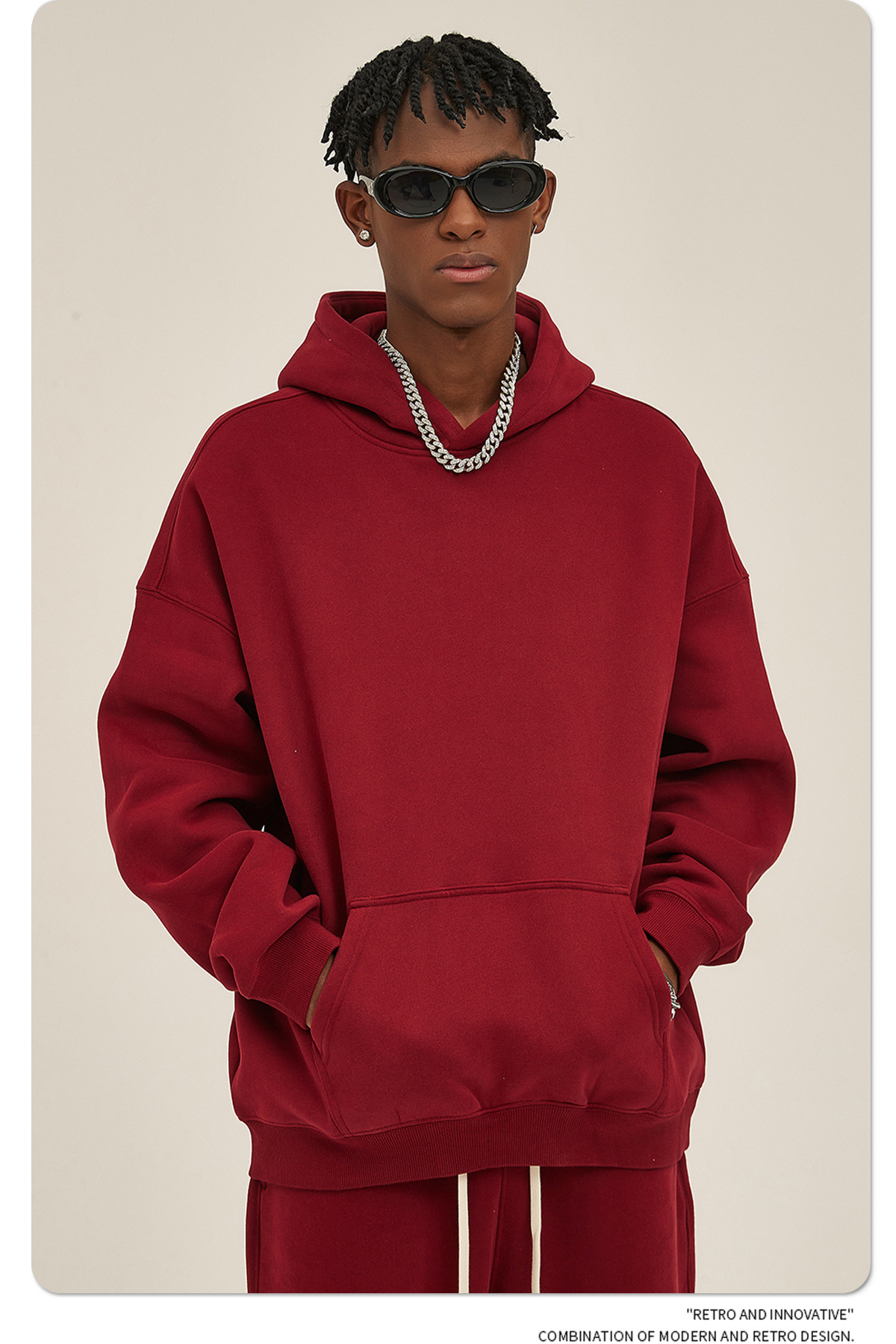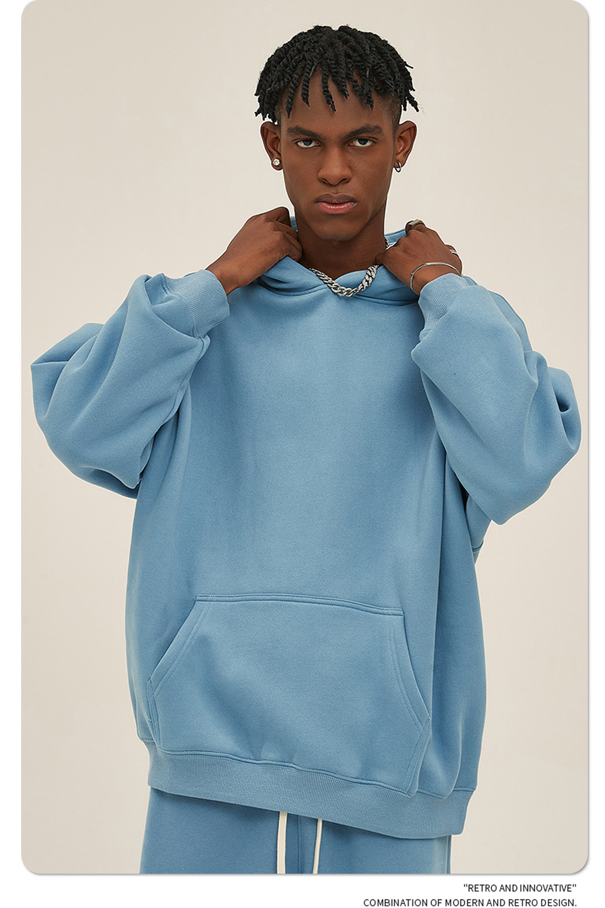2025 осень-зима новый oversize утолщение с капюшоном прилив мужской свитер американский пуловер 350 г сплошной цвет свитер мужской
