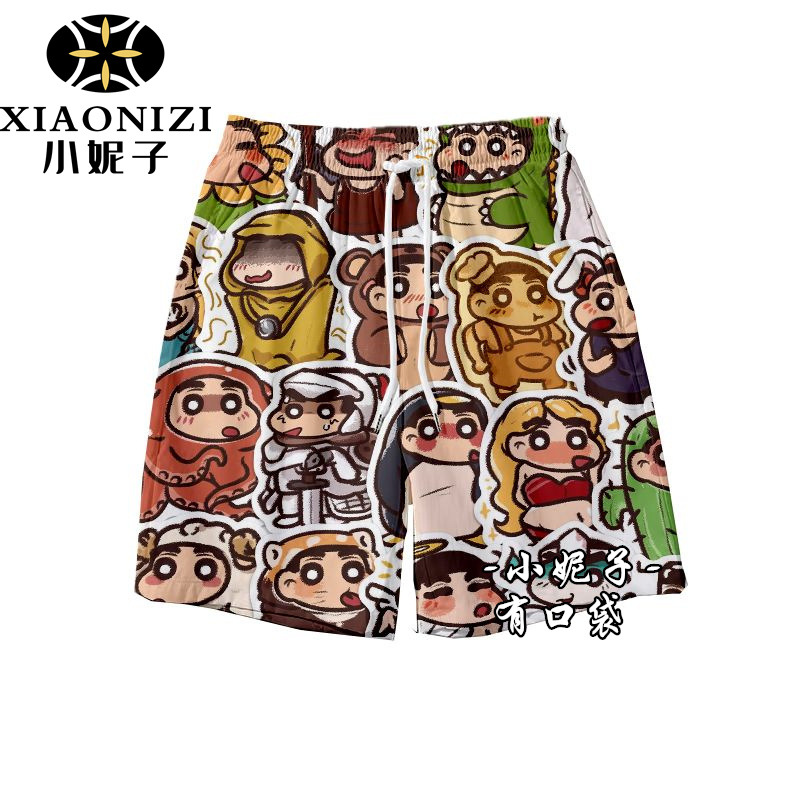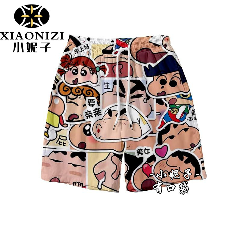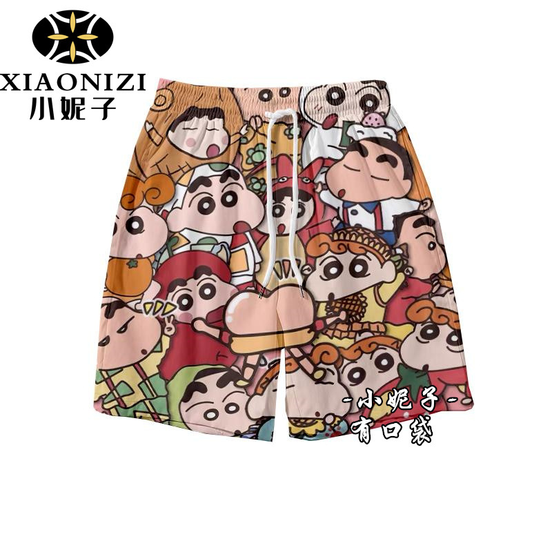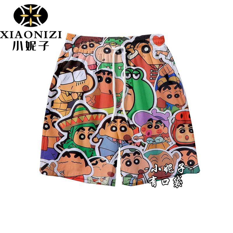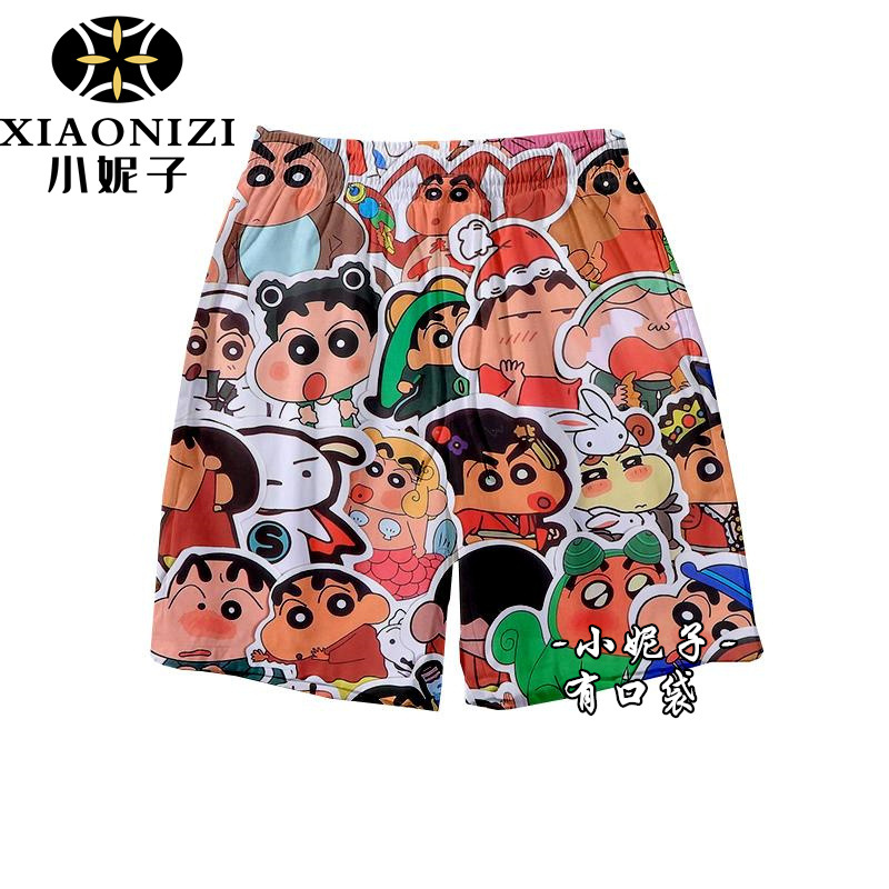 Мультфильм Crayon Shinchan летние свободные пляжные брюки ins баскетбольные шорты спортивные повседневные дикие укороченные брюки