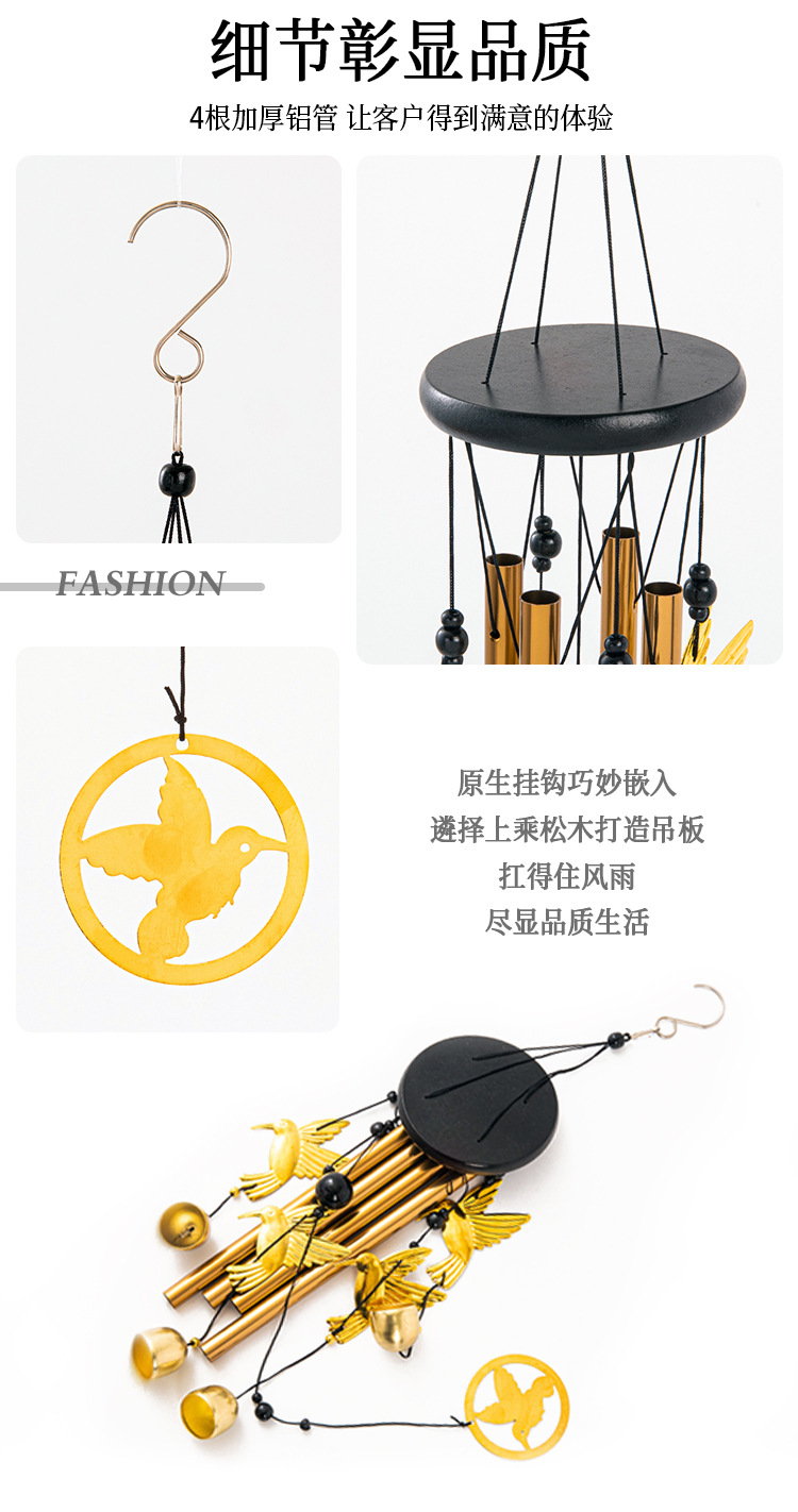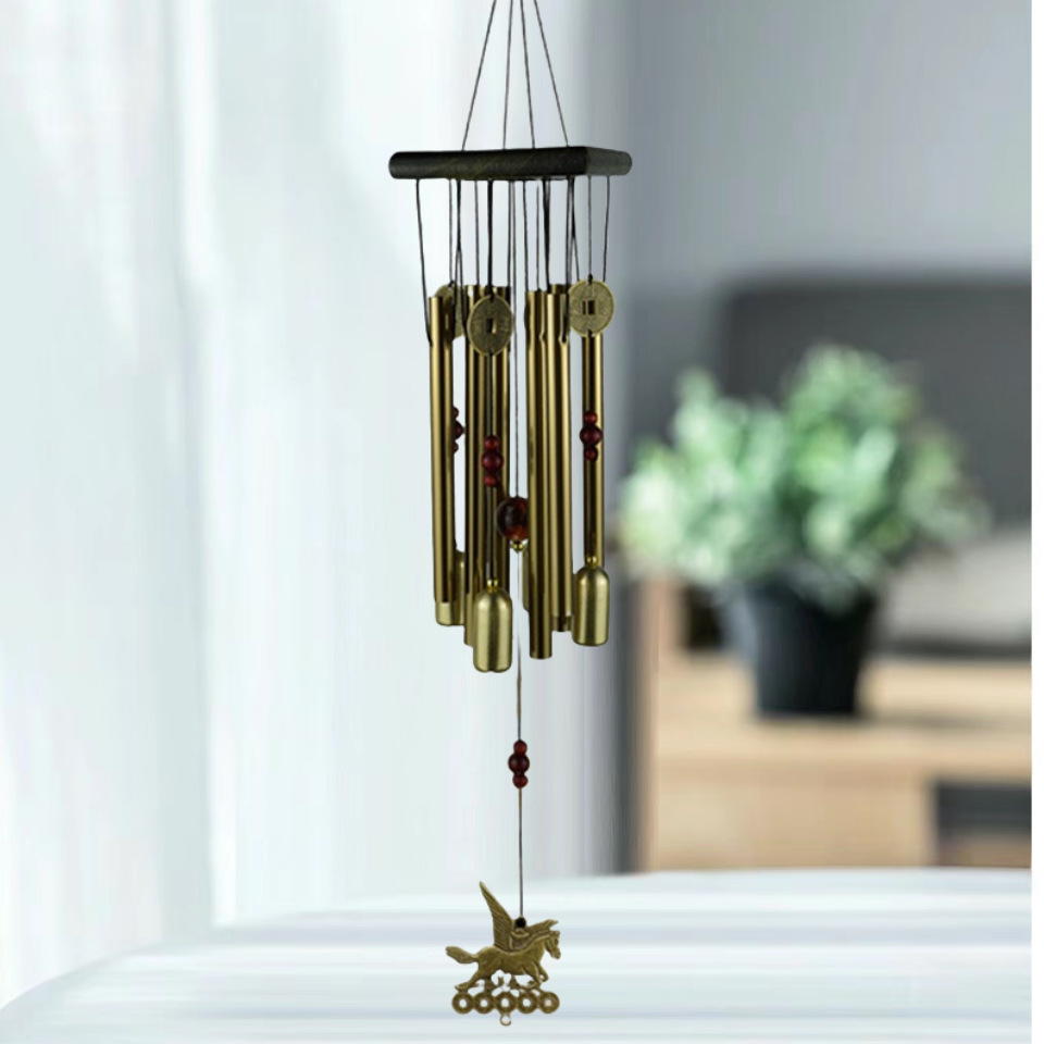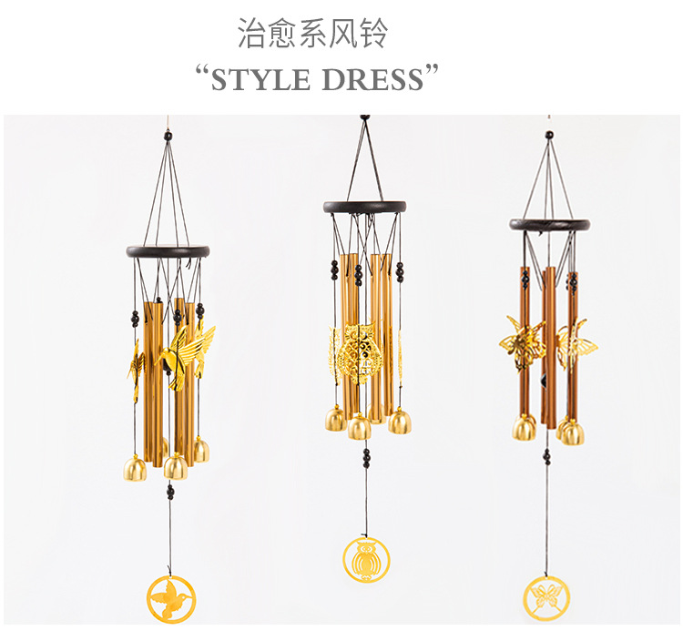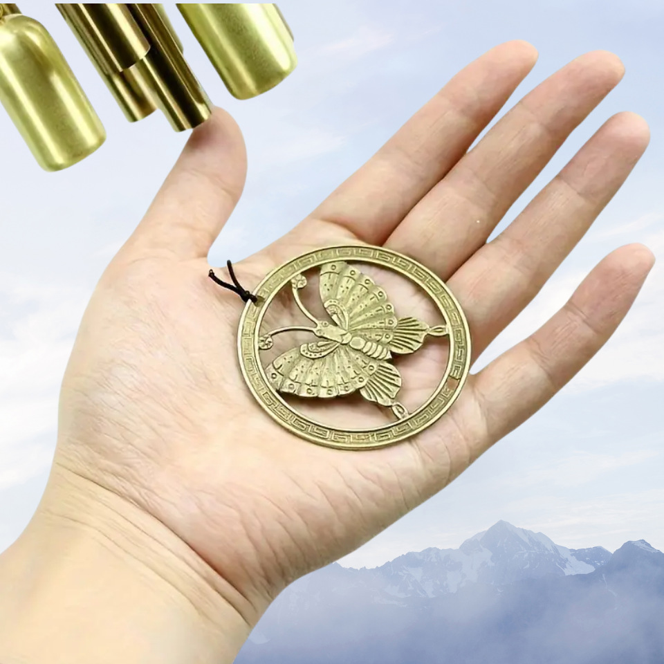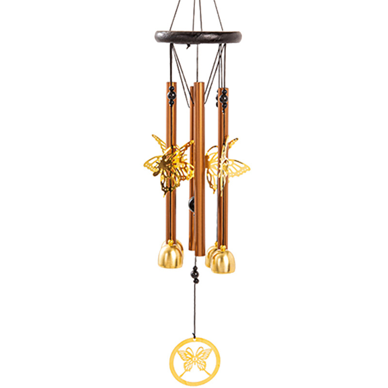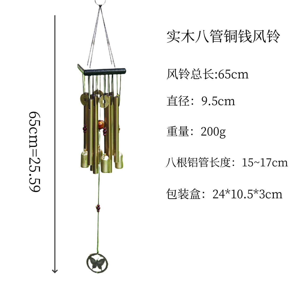 Популярная трансграничная ветряная музыкальная композиция «Бабочка» из массива дерева, с восемью алюминиевыми трубками и медными монетами, подвеска-вентилятор, ретро-декор для дома, настенное украшение