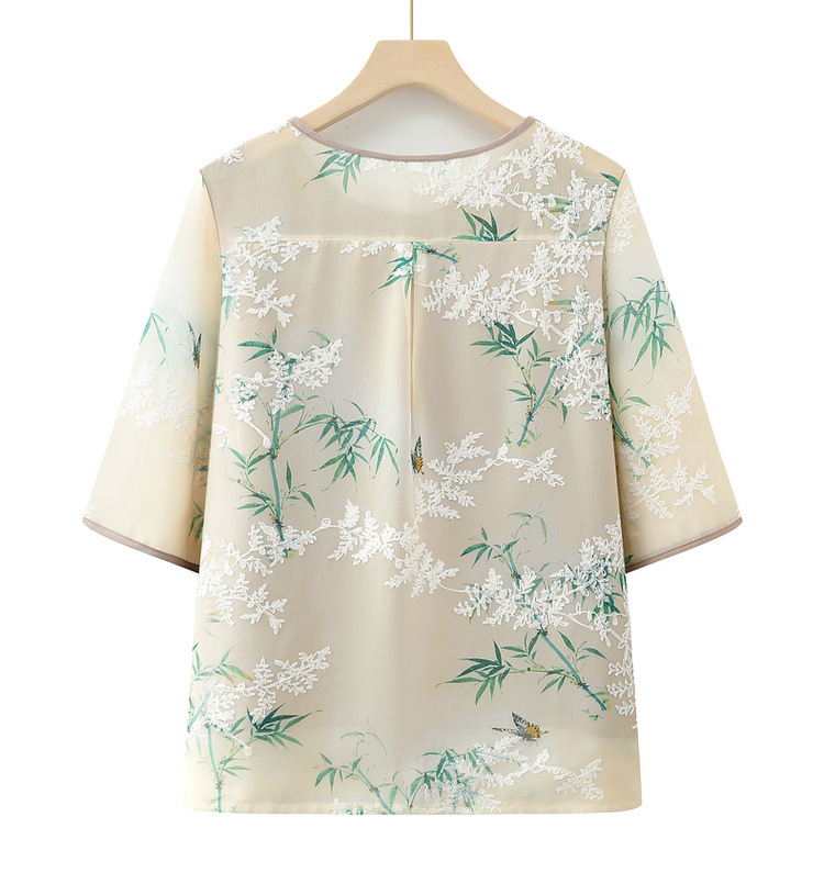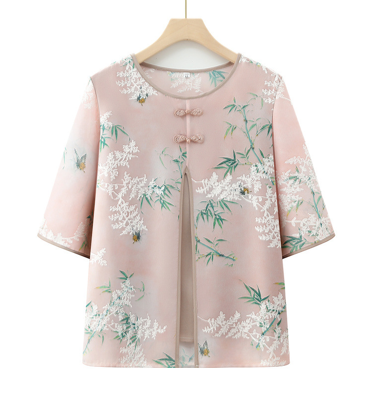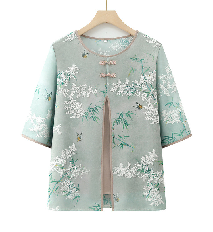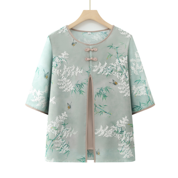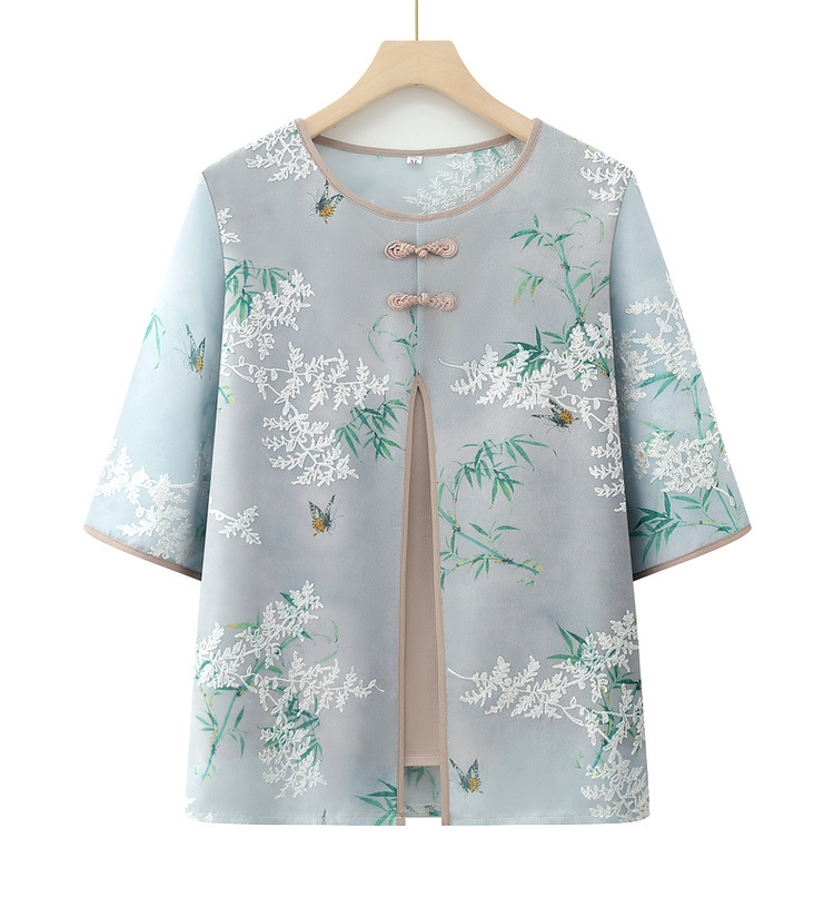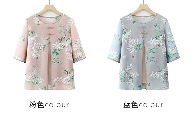Среднего и пожилого возраста весеннее платье национальный ветер с принтом топы бабушки 2024 новые поддельные две рубашки мама весенняя летняя рубашка