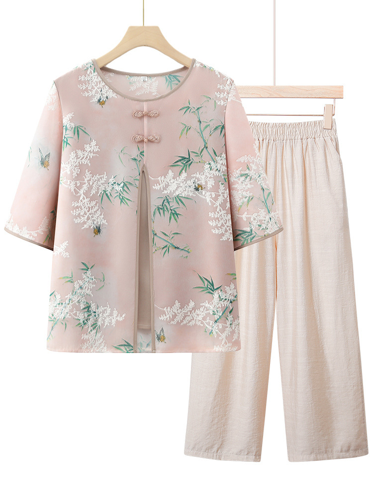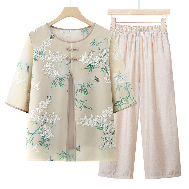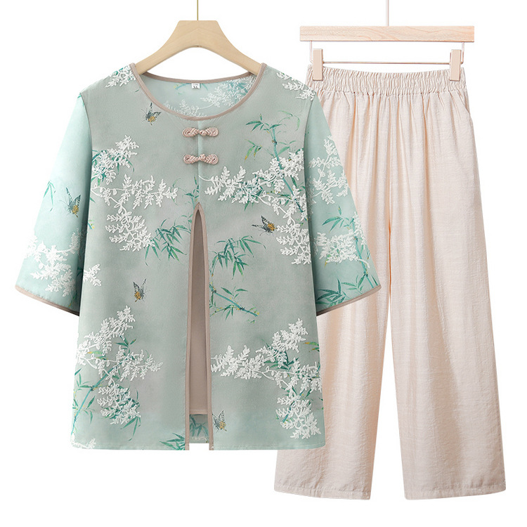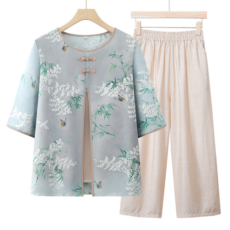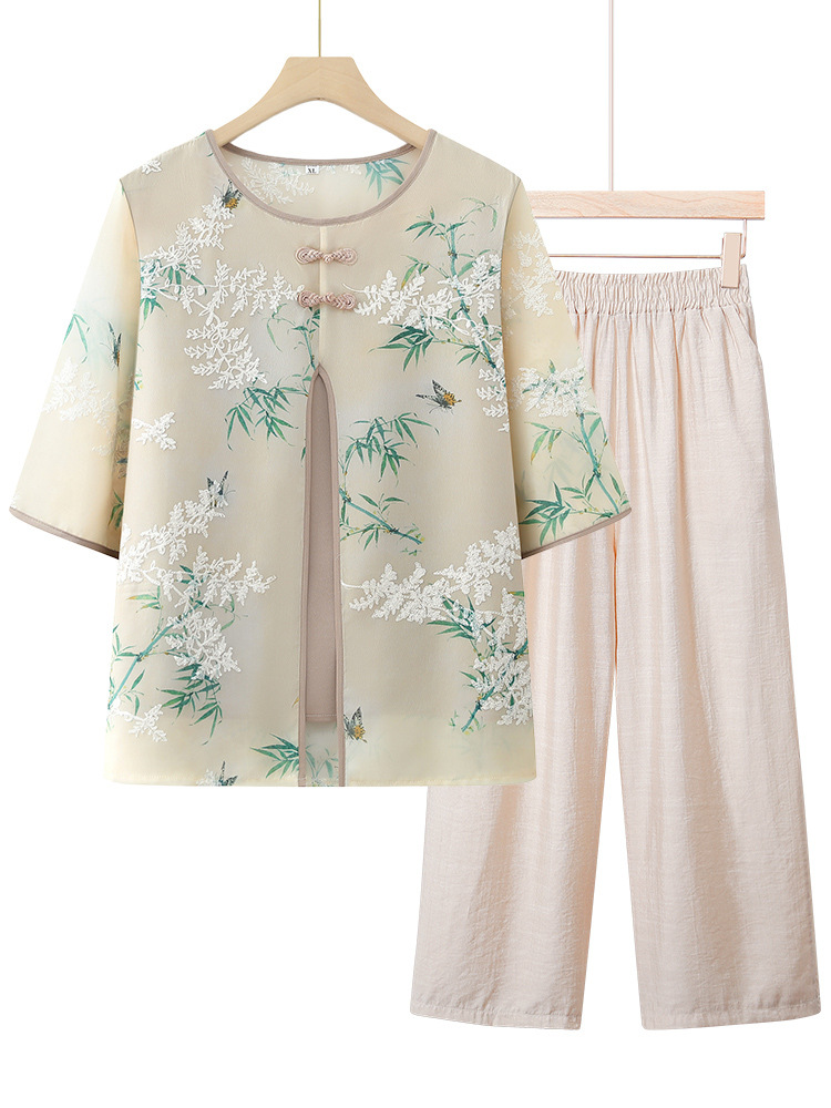 Среднего и пожилого возраста весеннее платье национальный ветер с принтом топы бабушки 2024 новые поддельные две рубашки мама весенняя летняя рубашка
