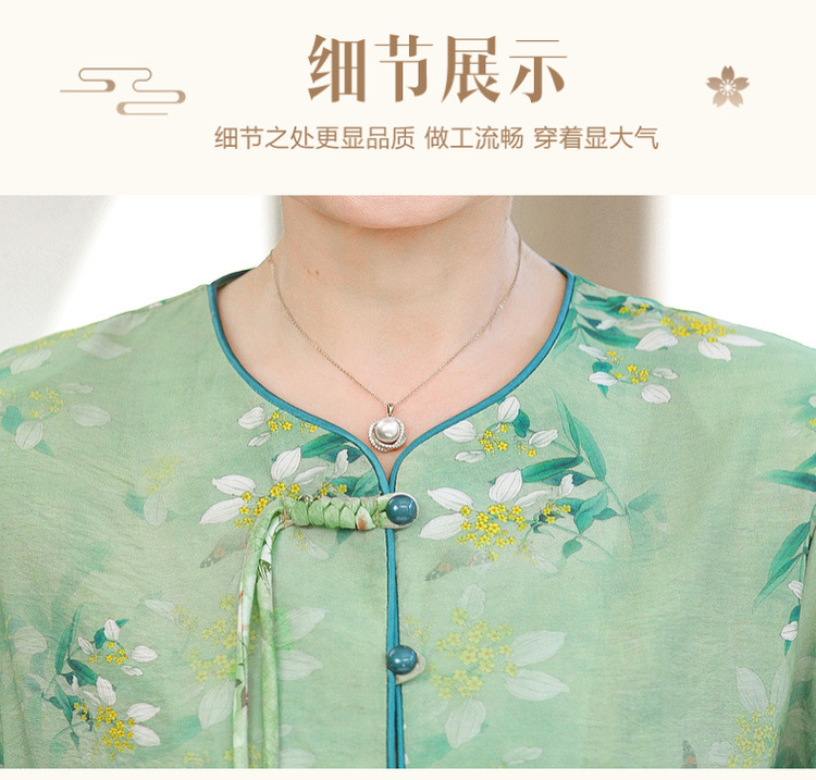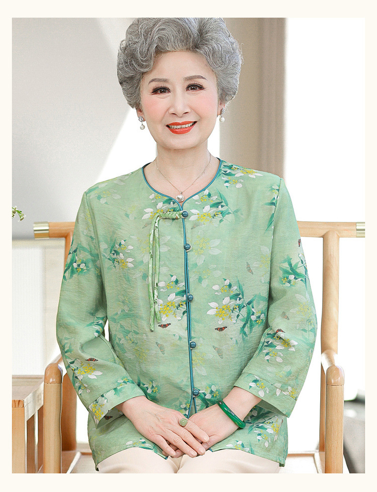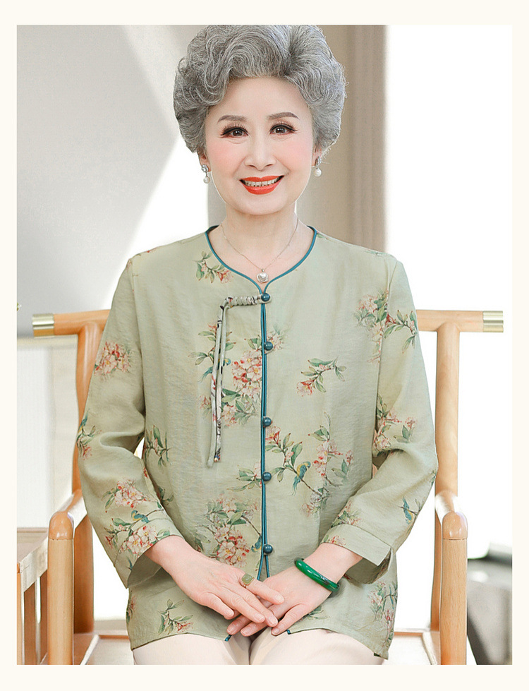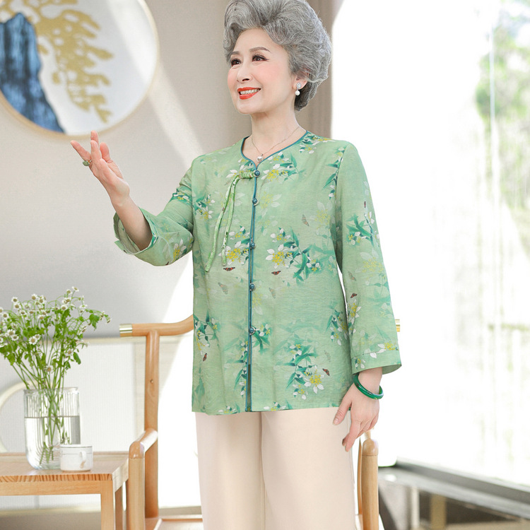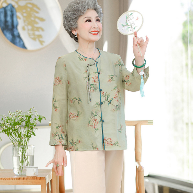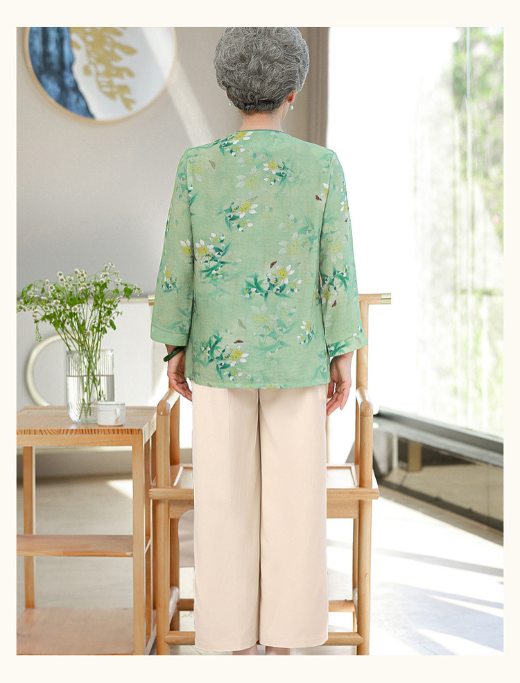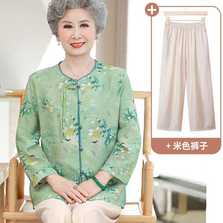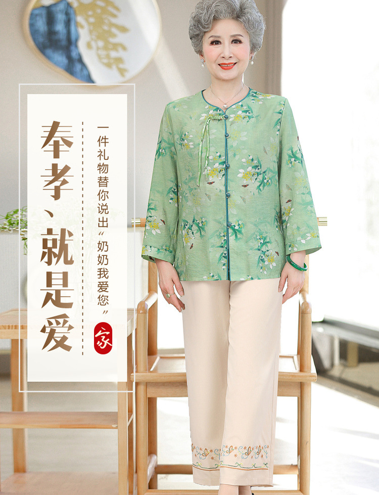 Мама одеваются весной и летом набор 2024 новые вышитые пуговицы топ брюки свободные удобные круглые воротники с длинными рукавами
