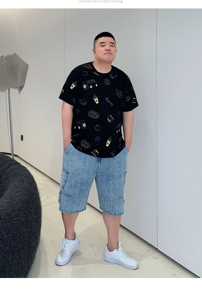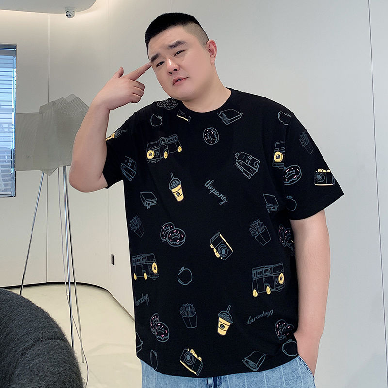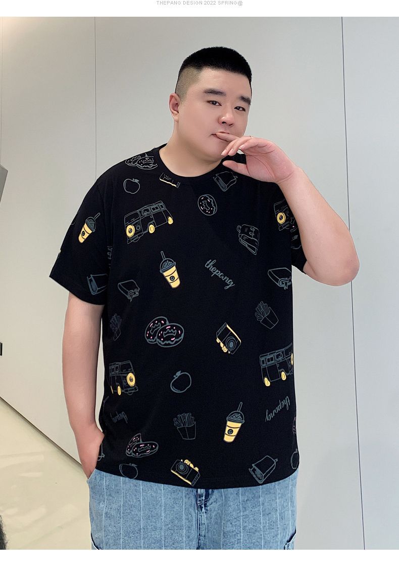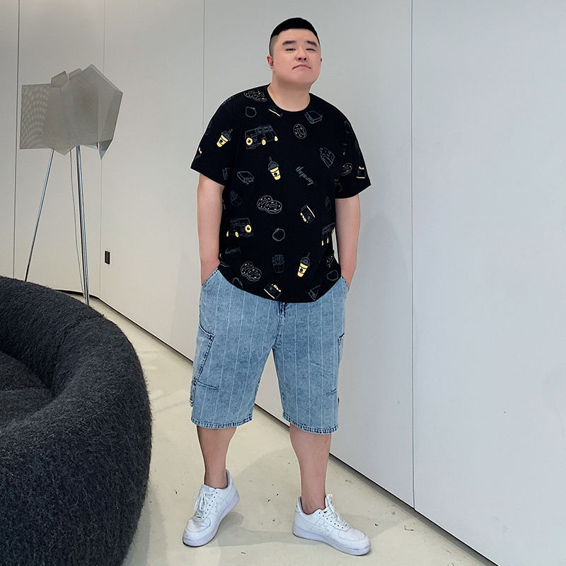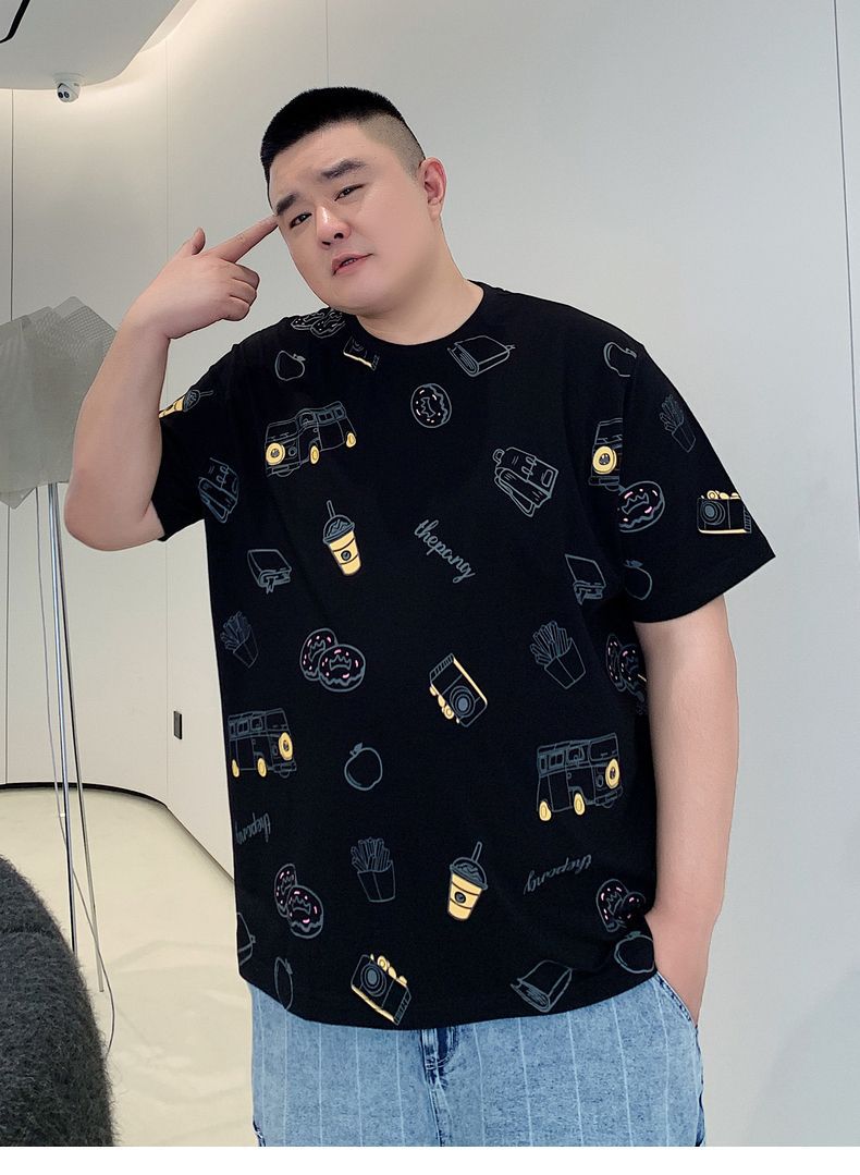 300 фунтов большого размера мужская толстая летняя новая свободная тонкая корейская версия повседневная футболка с короткими рукавами мужская толстая