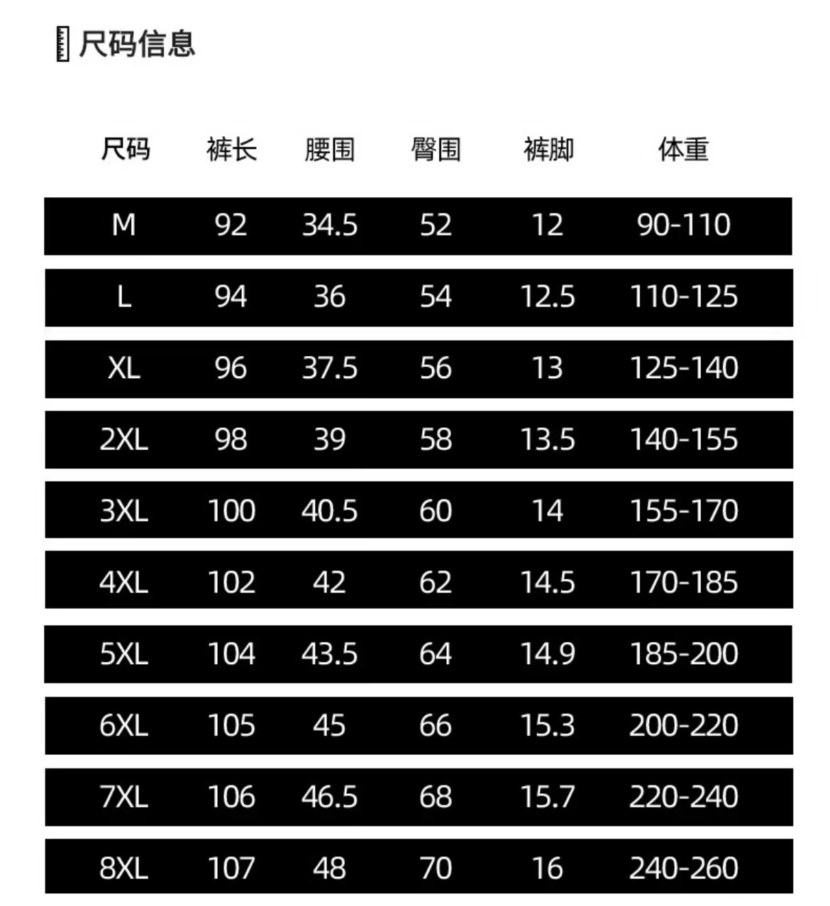 M [Рекомендуется 90-110 кг]; L [Рекомендуется 110-125 кг]; XL [Рекомендуется 125-140 кг]; 2XL [рекомендуется 140-155 кг]; 3XL [Рекомендуется 155-170 кг]; 4XL [рекомендуется 170-185 кг]; 5XL [Рекомендуется 185-200 кг]; 6XL [Рекомендуется 200-220 кг]; 7XL [Рекомендуется 220-240 кг]; 8XL [Рекомендуется 240-260 кг]