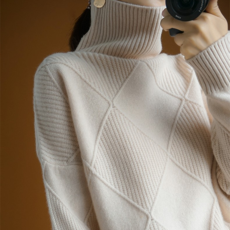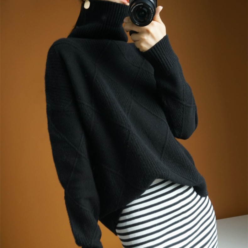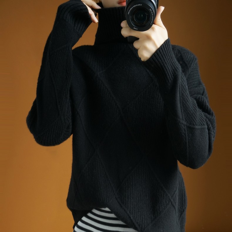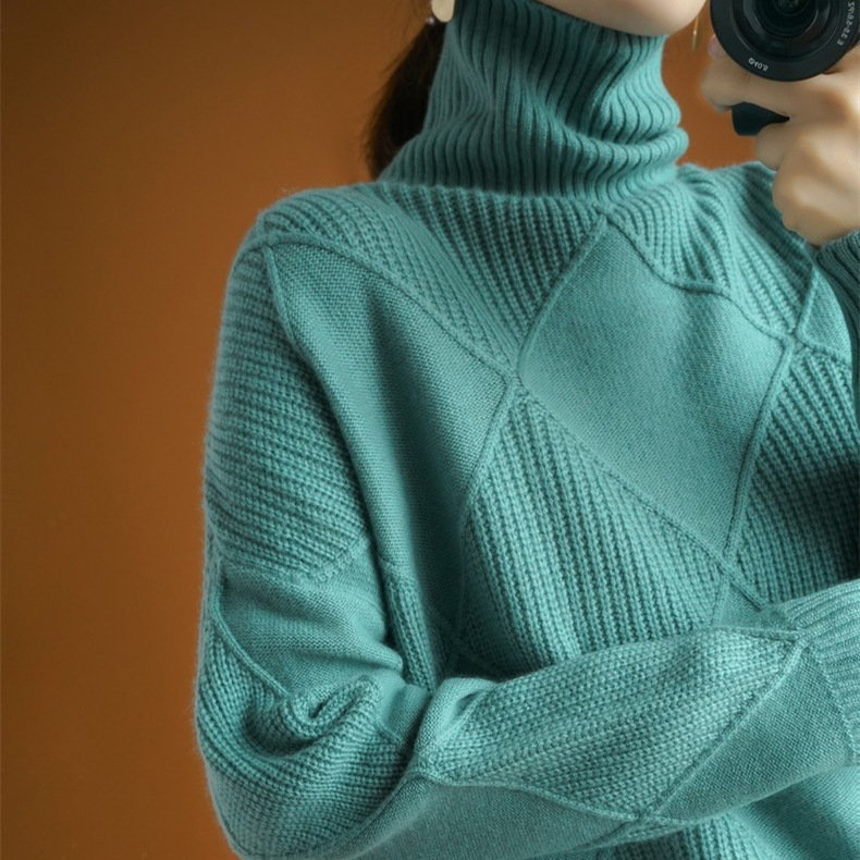 Осенний и зимний новый сплошной топ с высоким воротником