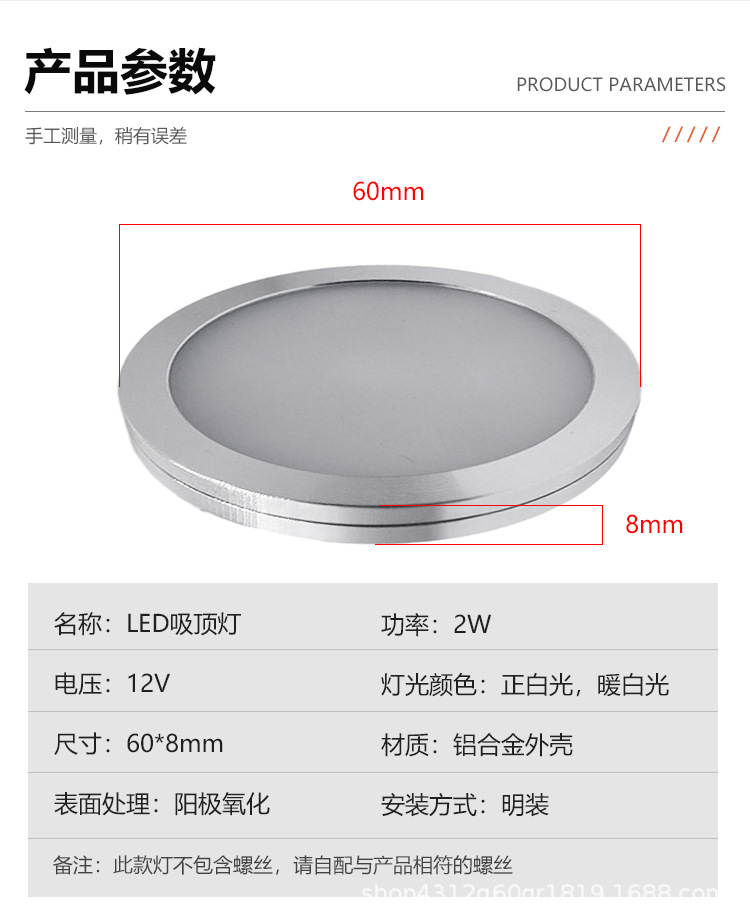 60mm/теплый белый свет/2W; 60mm/положительный белый свет/2W
