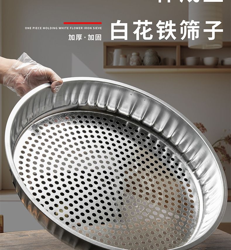 Белое железное сито (без отверстий); Белое железное сито (3 мм); Белое железное сито (4 мм); Белое железное сито (6 мм); Белое железное сито (8 мм); Белое железное сито (10 мм)