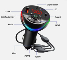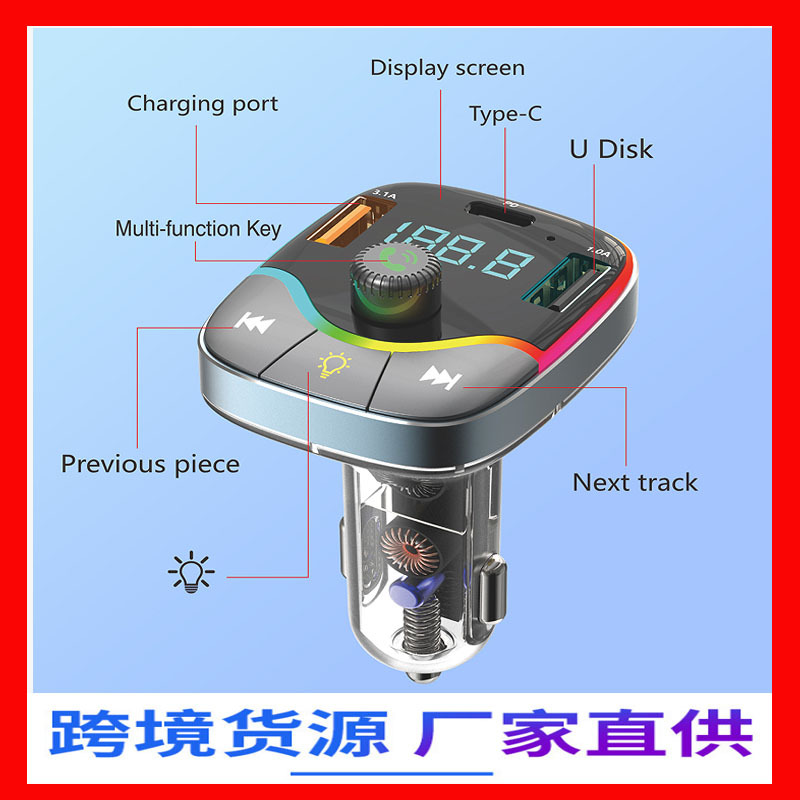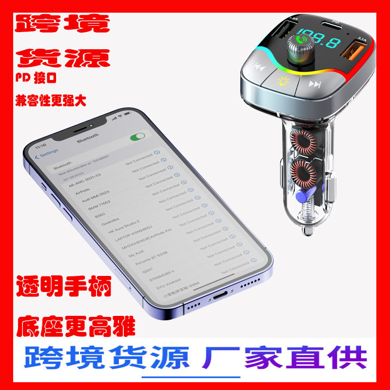 Автомобильный MP3-плеер HM104C16C17C18C19C20 с поддержкой Bluetooth, FM-радио, функцией громкой связи и быстрой зарядкой PD.