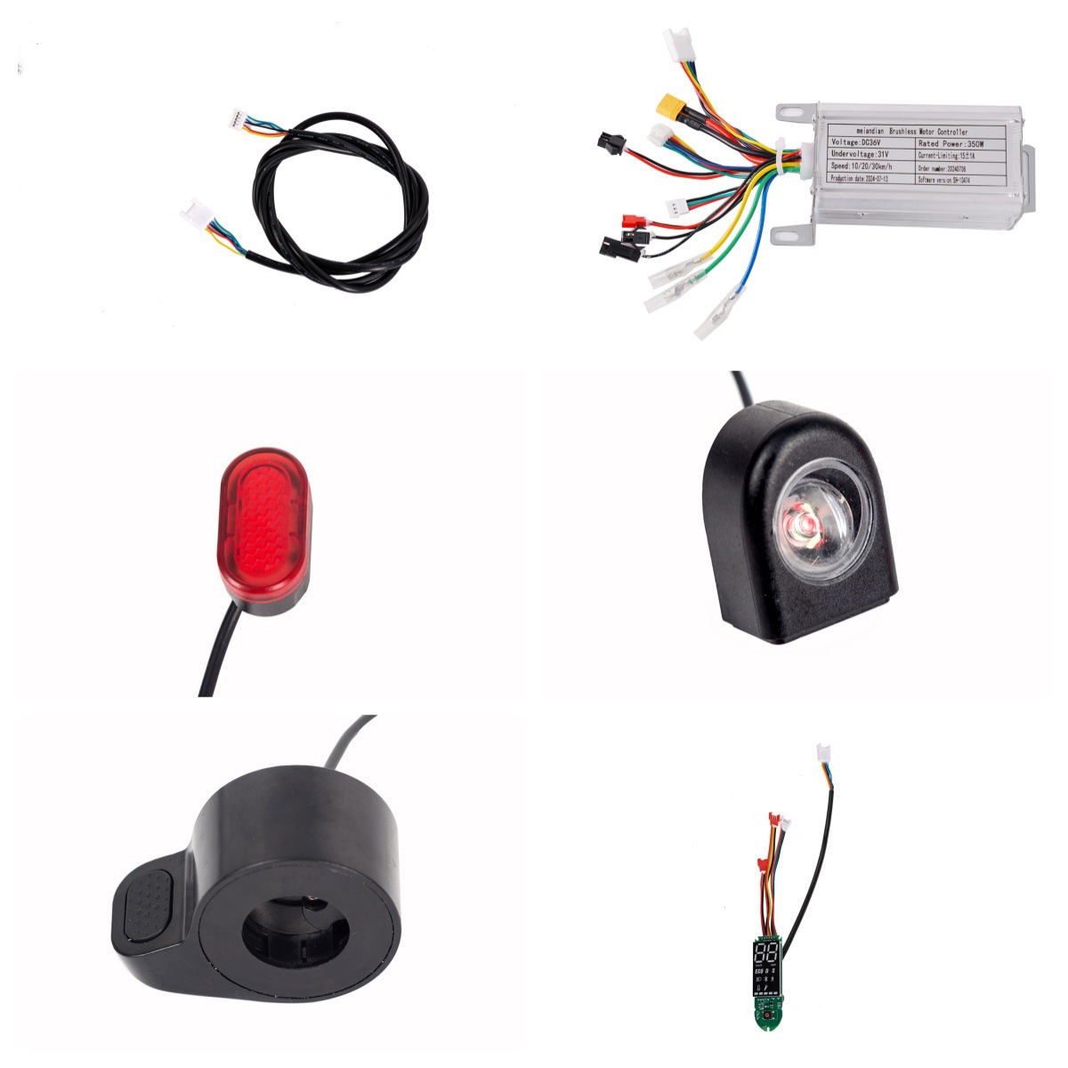 Контроллер + плата Bluetooth + крышка + акселератор + фара + задний фонарь + удлинитель + ручной тормоз (комплект из 8 предметов); Контроллер + плата Bluetooth + акселератор + фара + задний фонарь + удлинитель + крышка (комплект из 7 предметов); Плата Bluetooth + контроллер + акселератор + фара + задний фонарь + удлинитель (комплект из шести предметов); Контроллер + плата Bluetooth + крышка + акселератор + фара + задний фонарь + удлинитель + ручной тормоз + силиконовая крышка ручного тормоза (набор из девяти предметов); Контроллер + плата Bluetooth + крышка + акселератор + фара + задний фонарь + удлинительный кабель + ручной тормоз + силиконовый чехол ручного тормоза + водонепроницаемый силиконовый чехол (набор из десяти предметов); Контроллер + плата Bluetooth + крышка + фара + задний фонарь + удлинитель + ручной тормоз (комплект из семи предметов-2)); Контроллер + прибор + удлинитель + крышка прибора; Контроллер + плата Bluetooth + крышка + акселератор + фара + задний фонарь + удлинитель + ручной тормоз + световая панель (комплект из 9 предметов с подсветкой); Контроллер + плата Bluetooth + акселератор + удлинитель + крышка + тормозной рычаг (комплект из 6 предметов-2); Контроллер + прибор + удлинитель + крышка прибора + акселератор