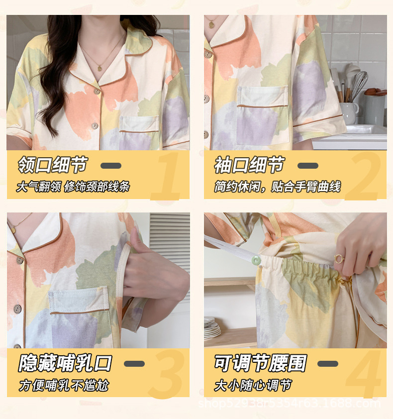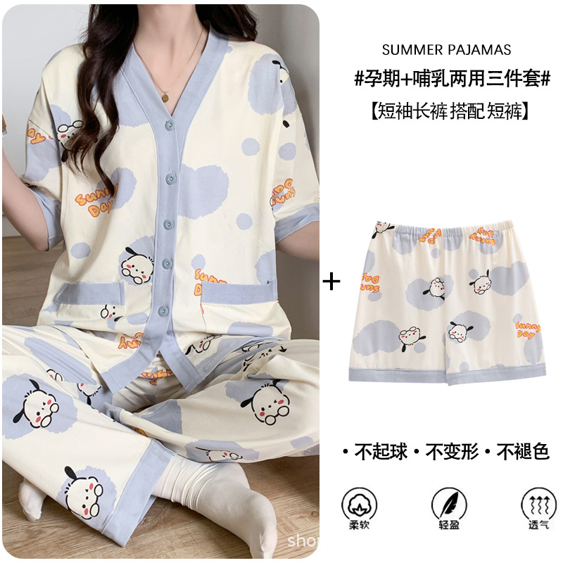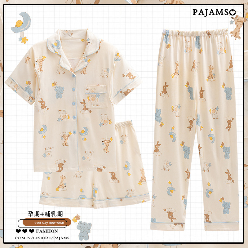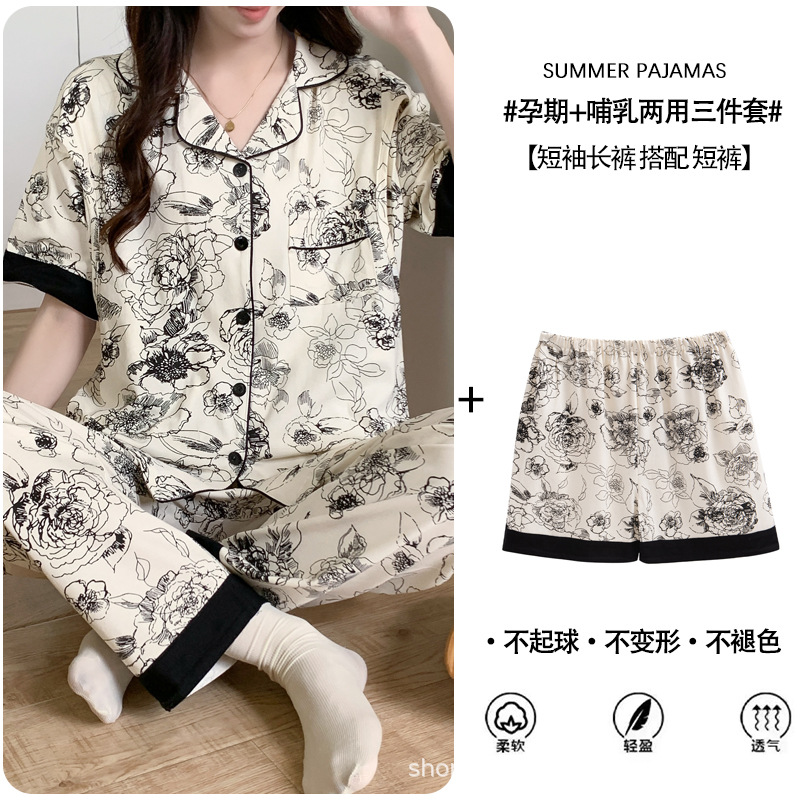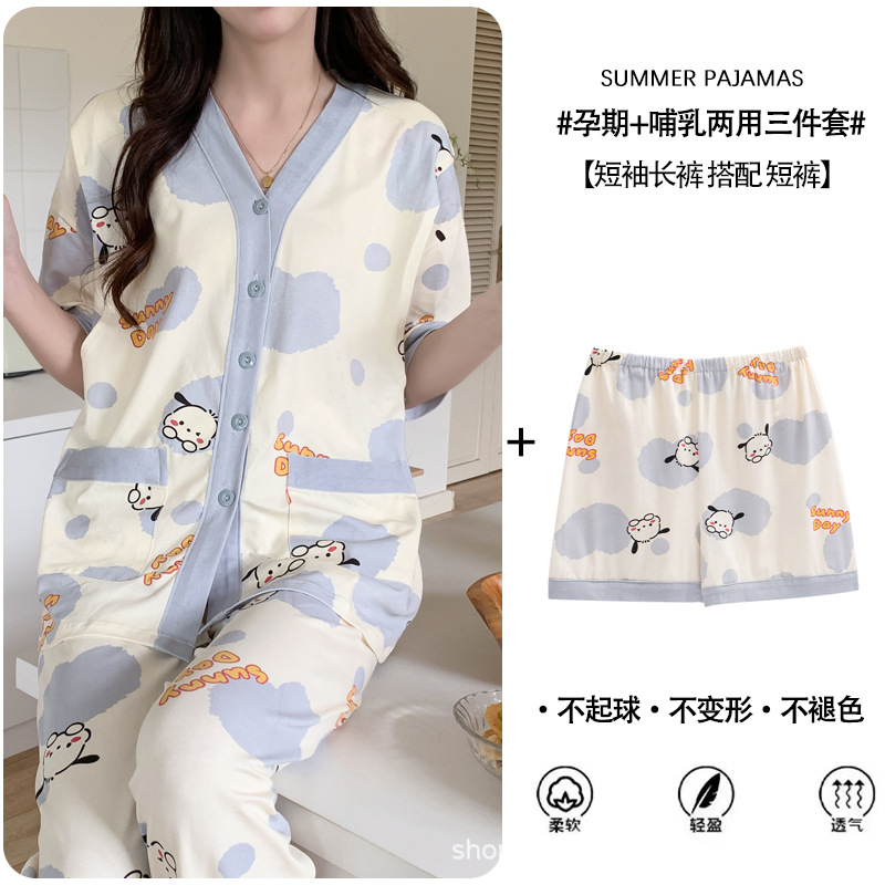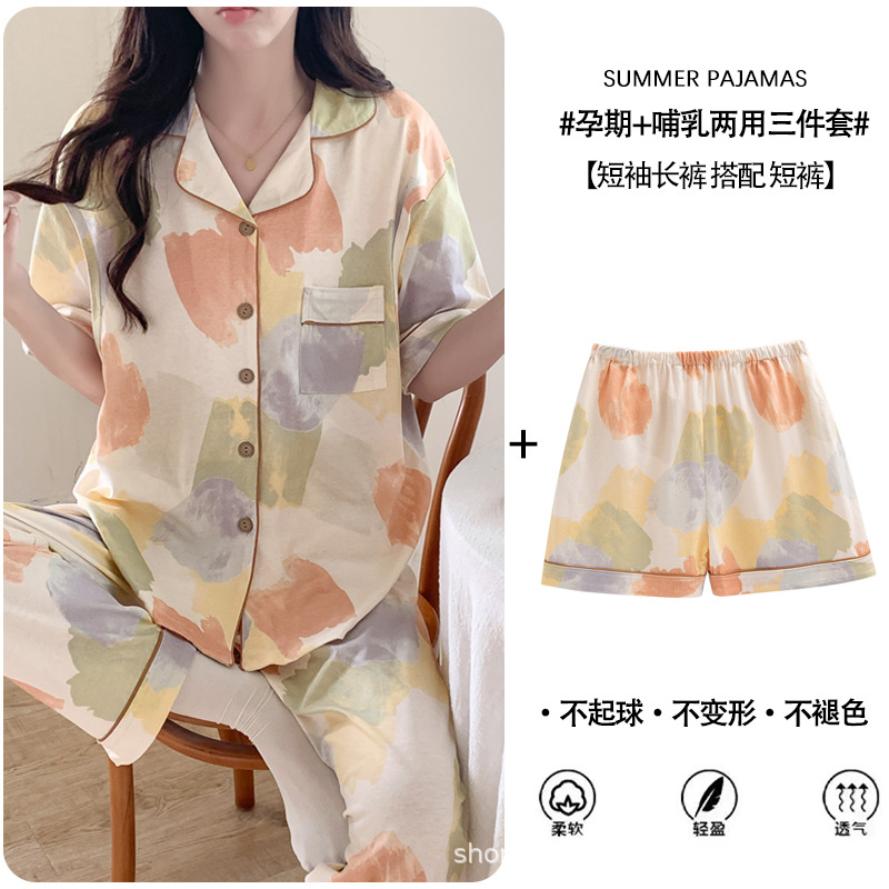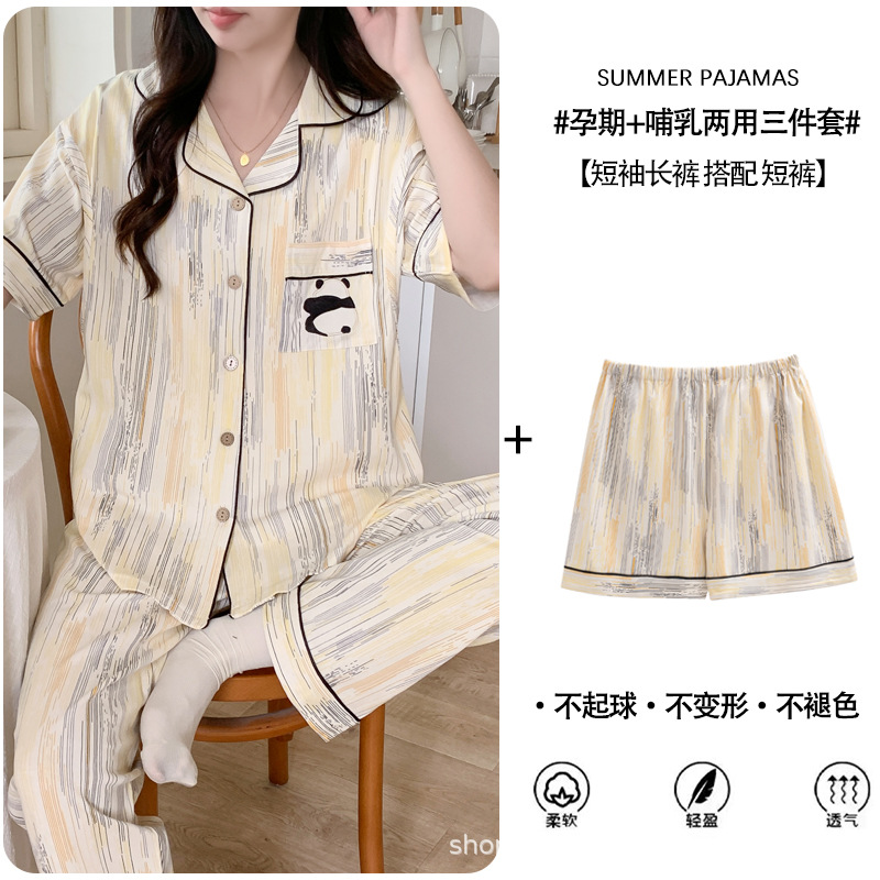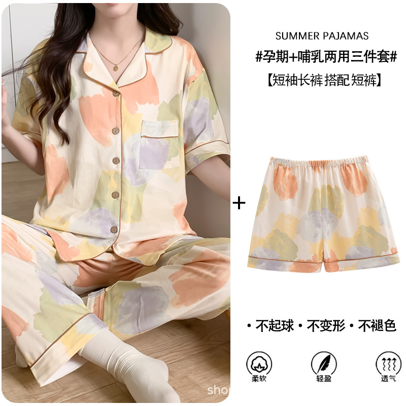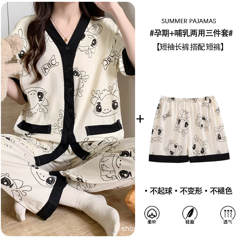 Кормление из трех частей на летнее лето тонкое послеродовое кормление с короткими рукавами, пижама для беременных
