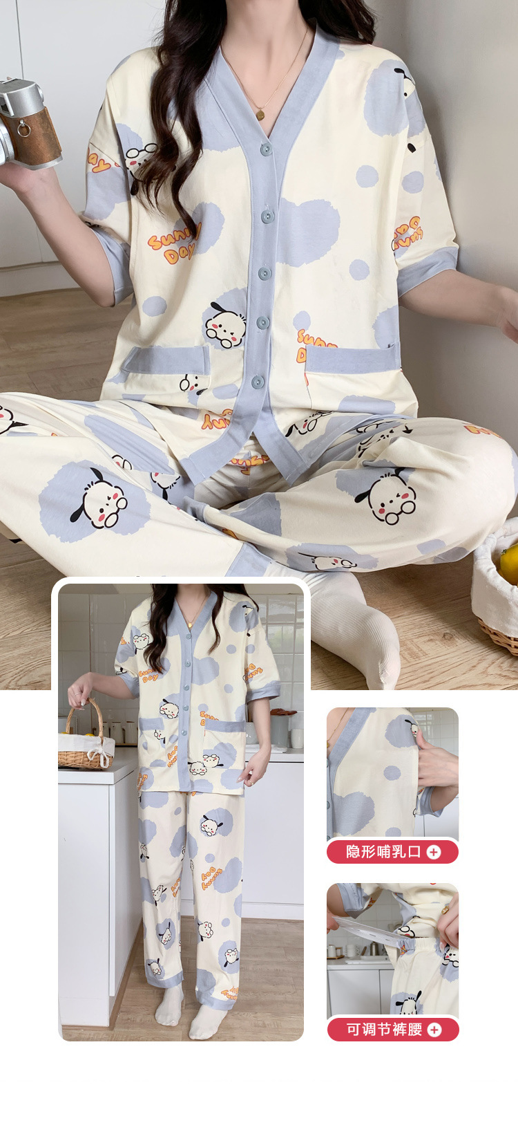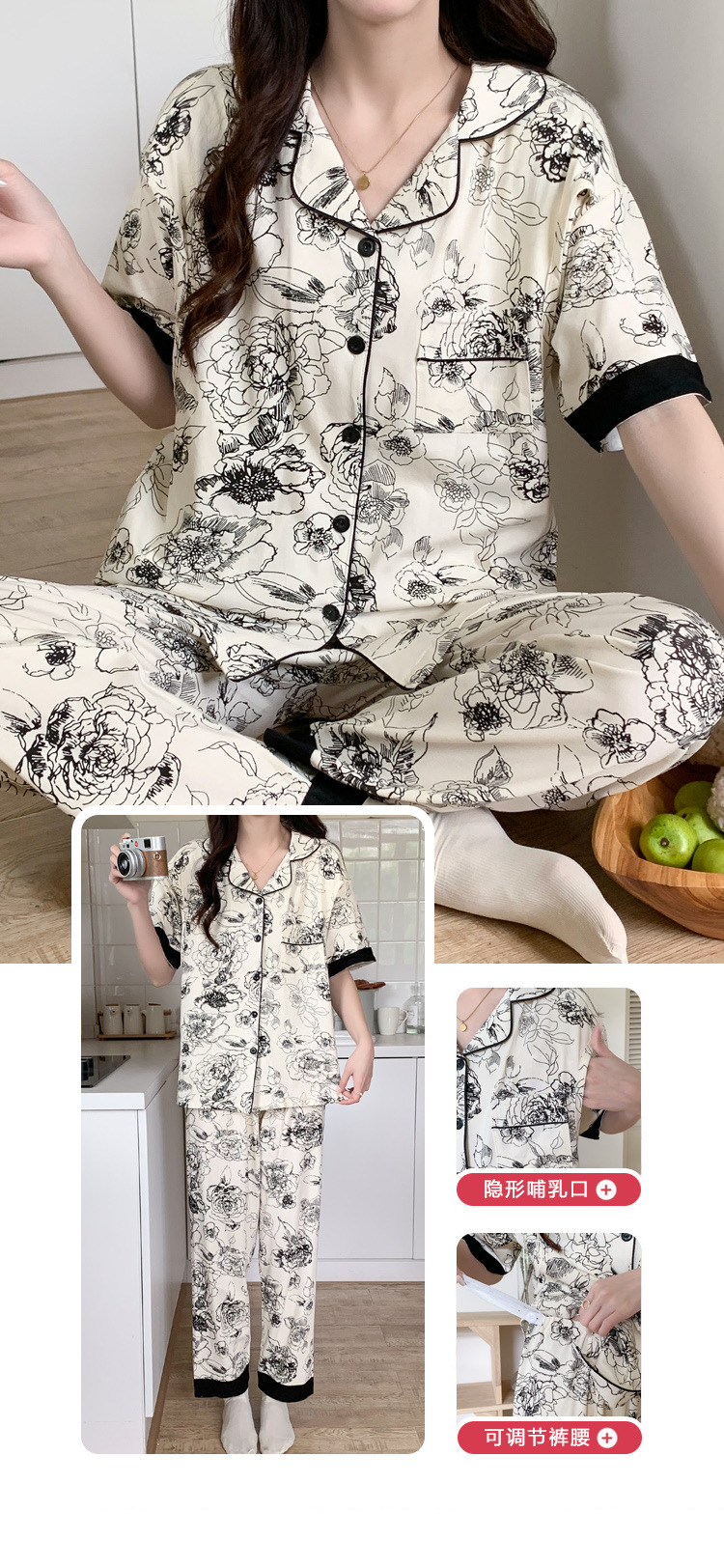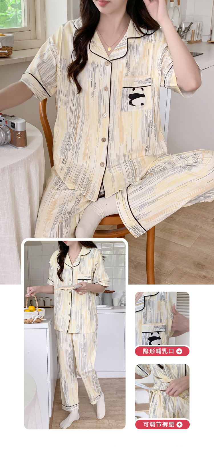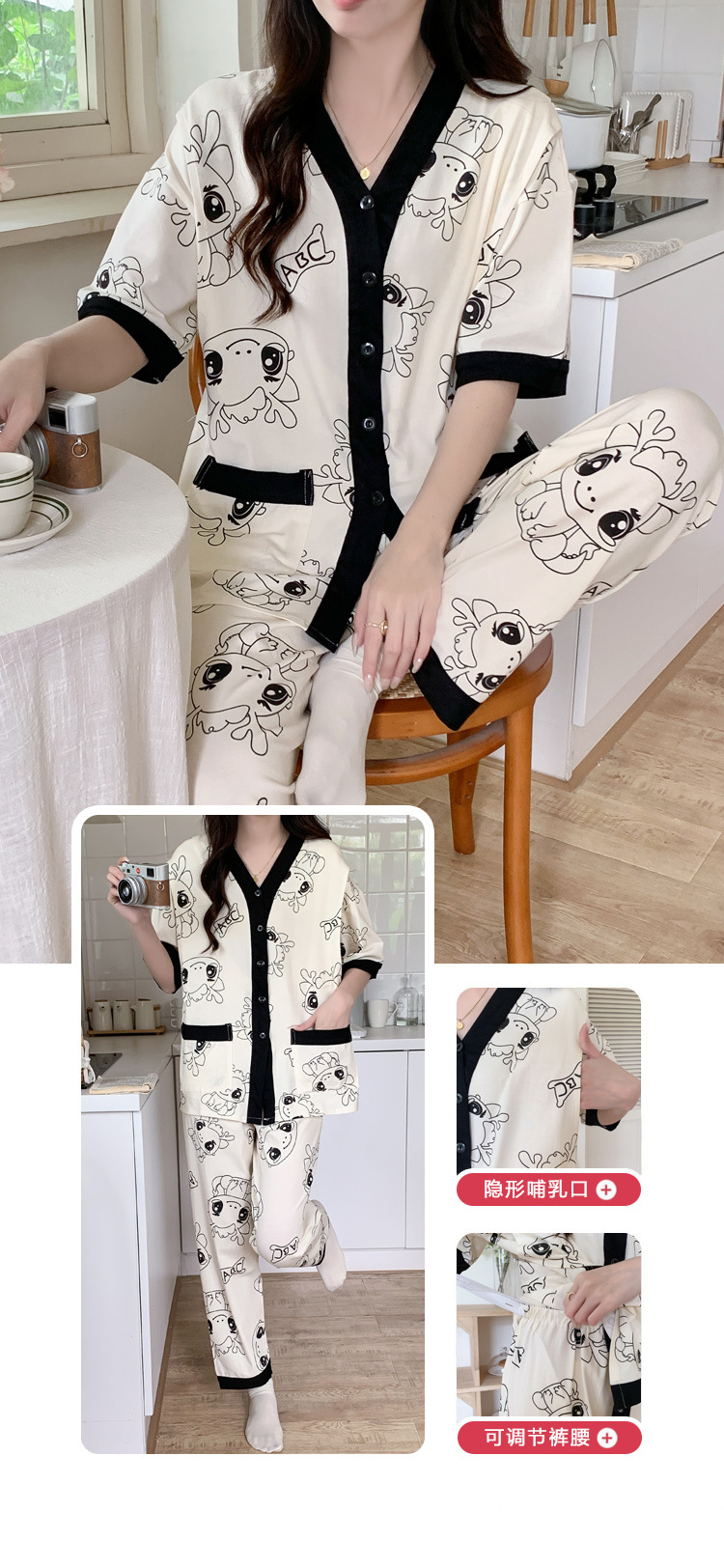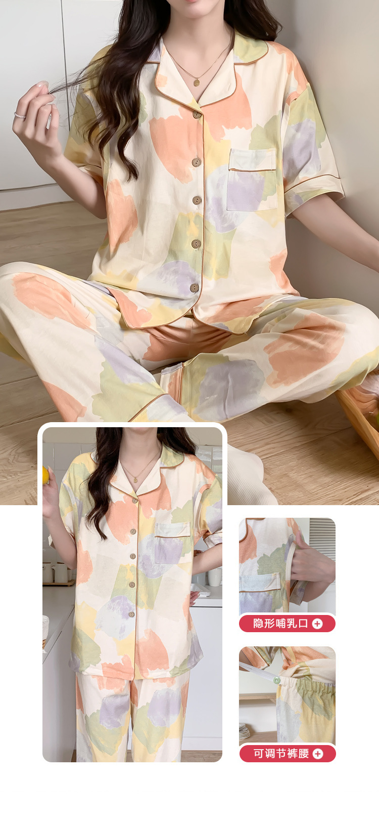 Кормление из трех частей на летнее лето тонкое послеродовое кормление с короткими рукавами, пижама для беременных