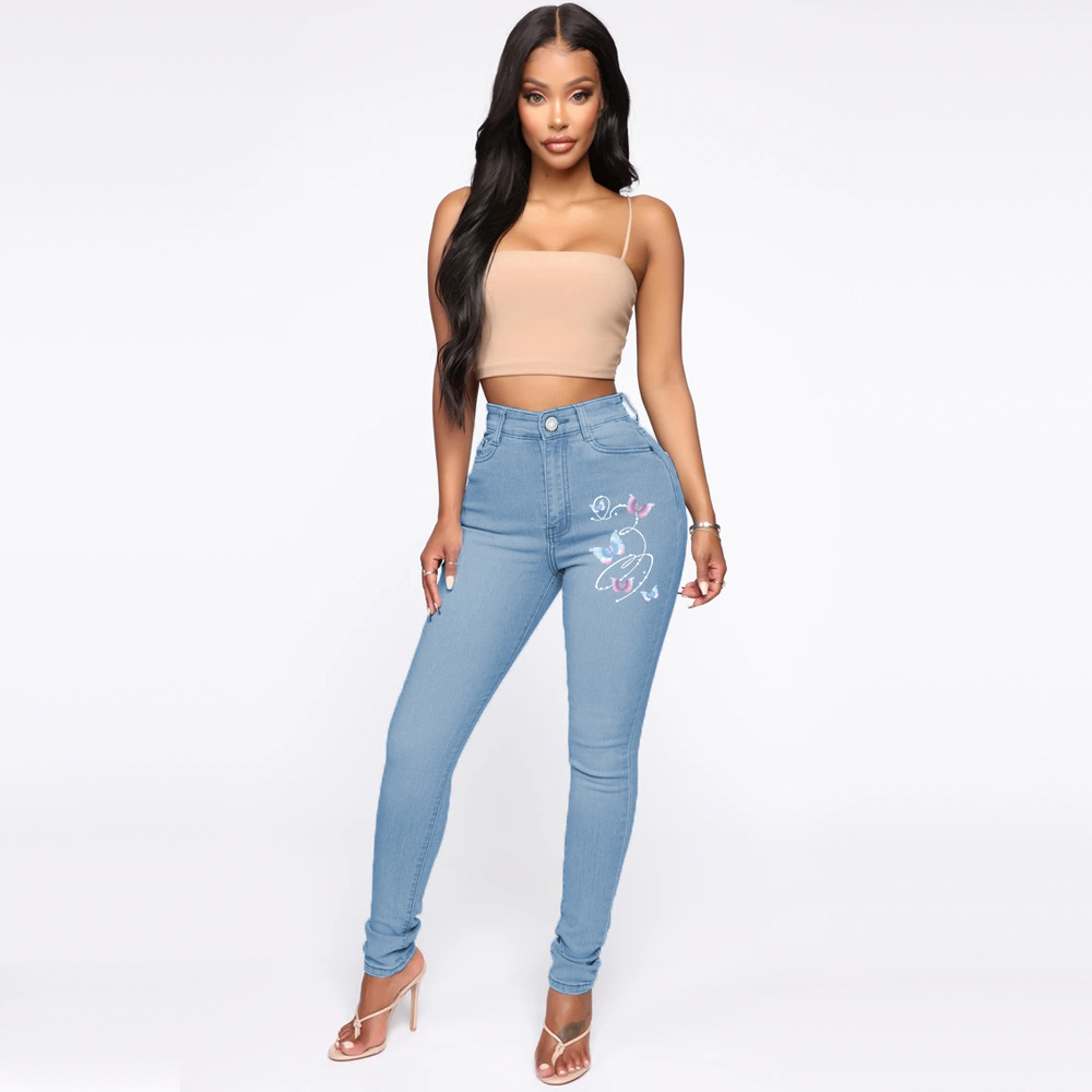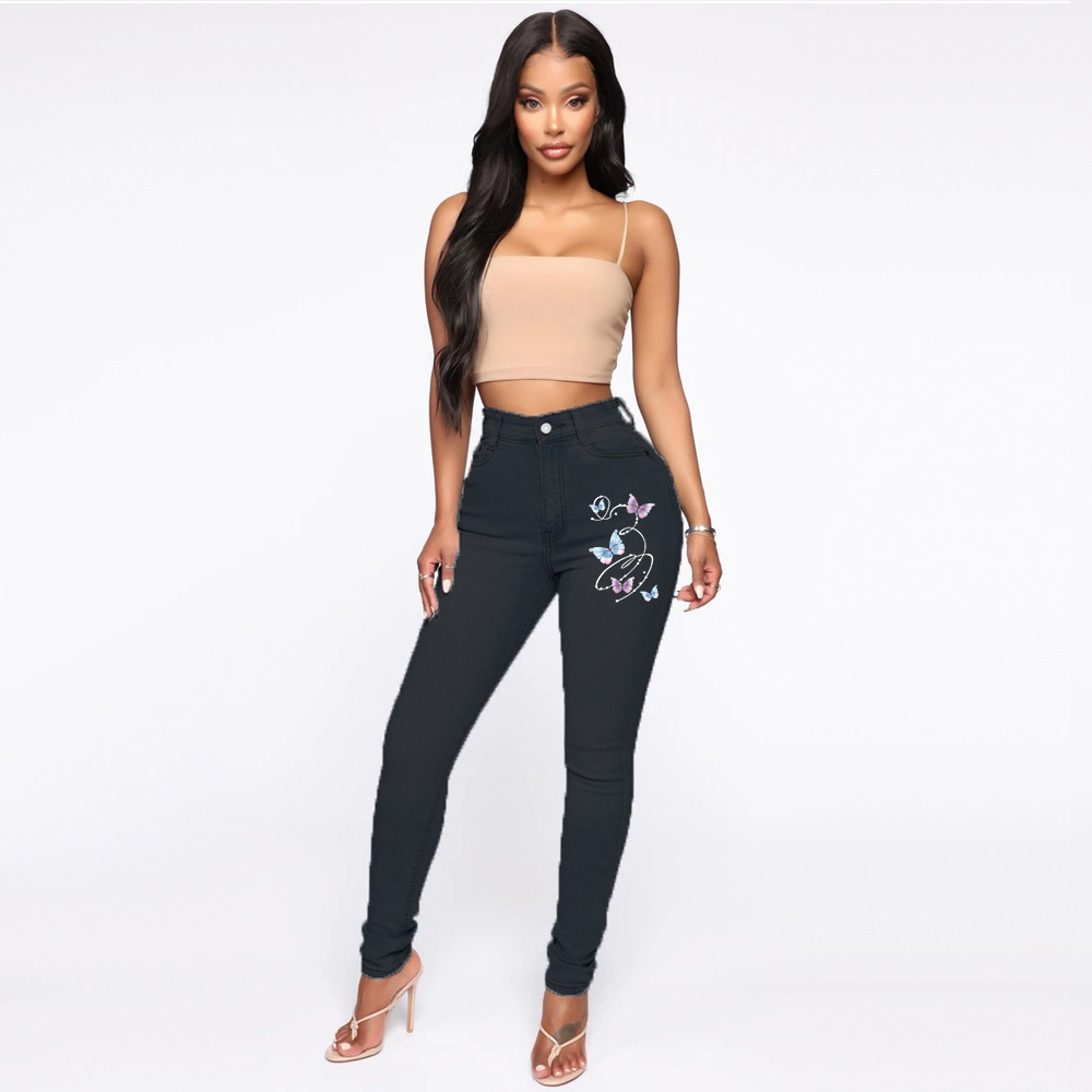 Джинсы-бабочки с европейским принтом джинсы женские брюки-карандаш сексуальная JN01-276