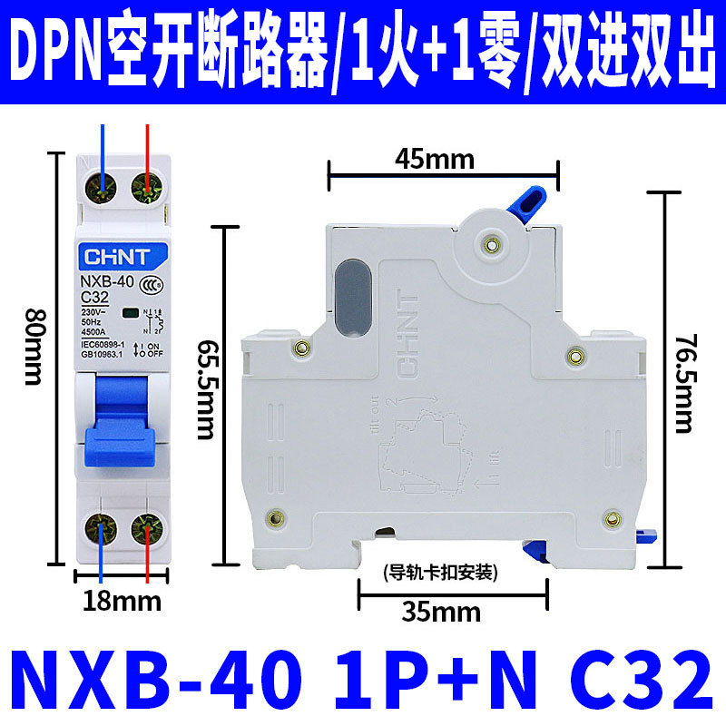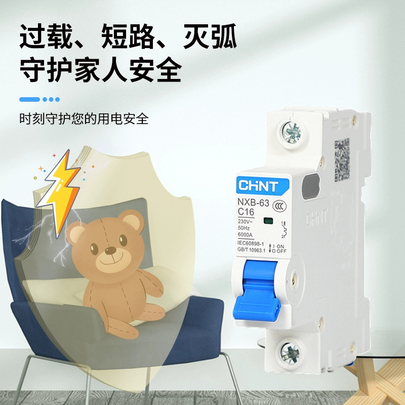 Chint Автоматический выключатель небольшой пустой 220v домашний 1P32a огнестойкий NXB воздушный выключатель утечки защиты выключатель