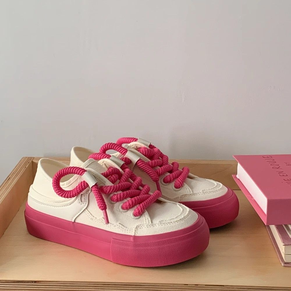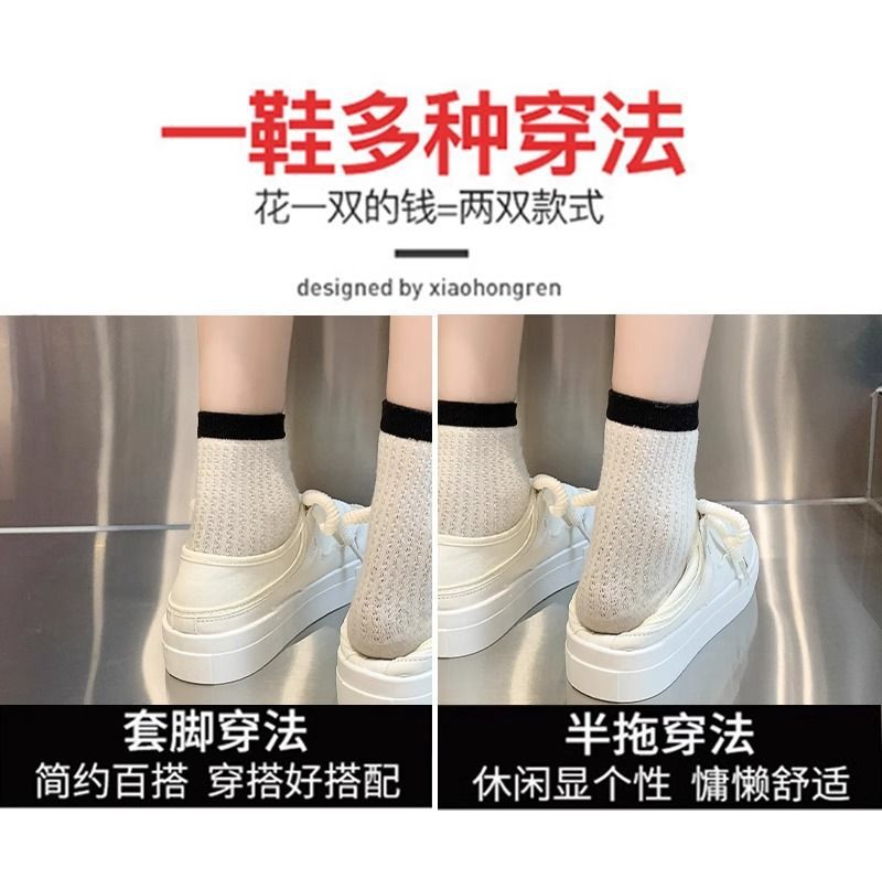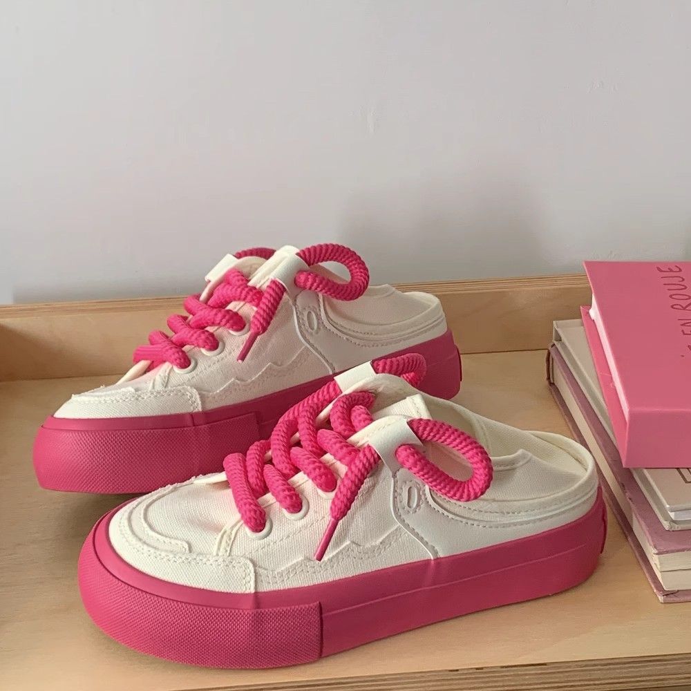 Два способа ношения ~ Розовые красные дышащие тонкие педали ленивые полутолщенные холщовые туфли для девочек осенние студенты маленькие белые туфли