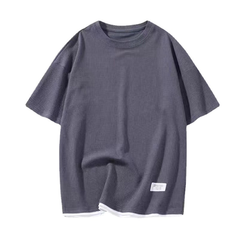 Один из вафтовых спортивных и развлекательных наборов для мужчин в Гонконге, свободном стиле, поддельные две шорты с короткими рукавами на складе оптом
