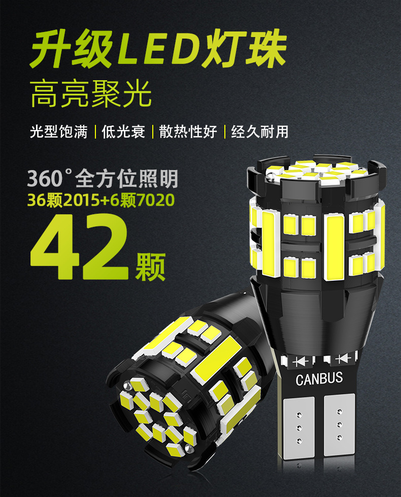 Светодиодная лампа Jiachi T15 для заднего хода, фонарь заднего хода для автомобиля 2015 года, лампа стояночного света 7020, модель 2015 года с декодером, модель 42 с высокой яркостью