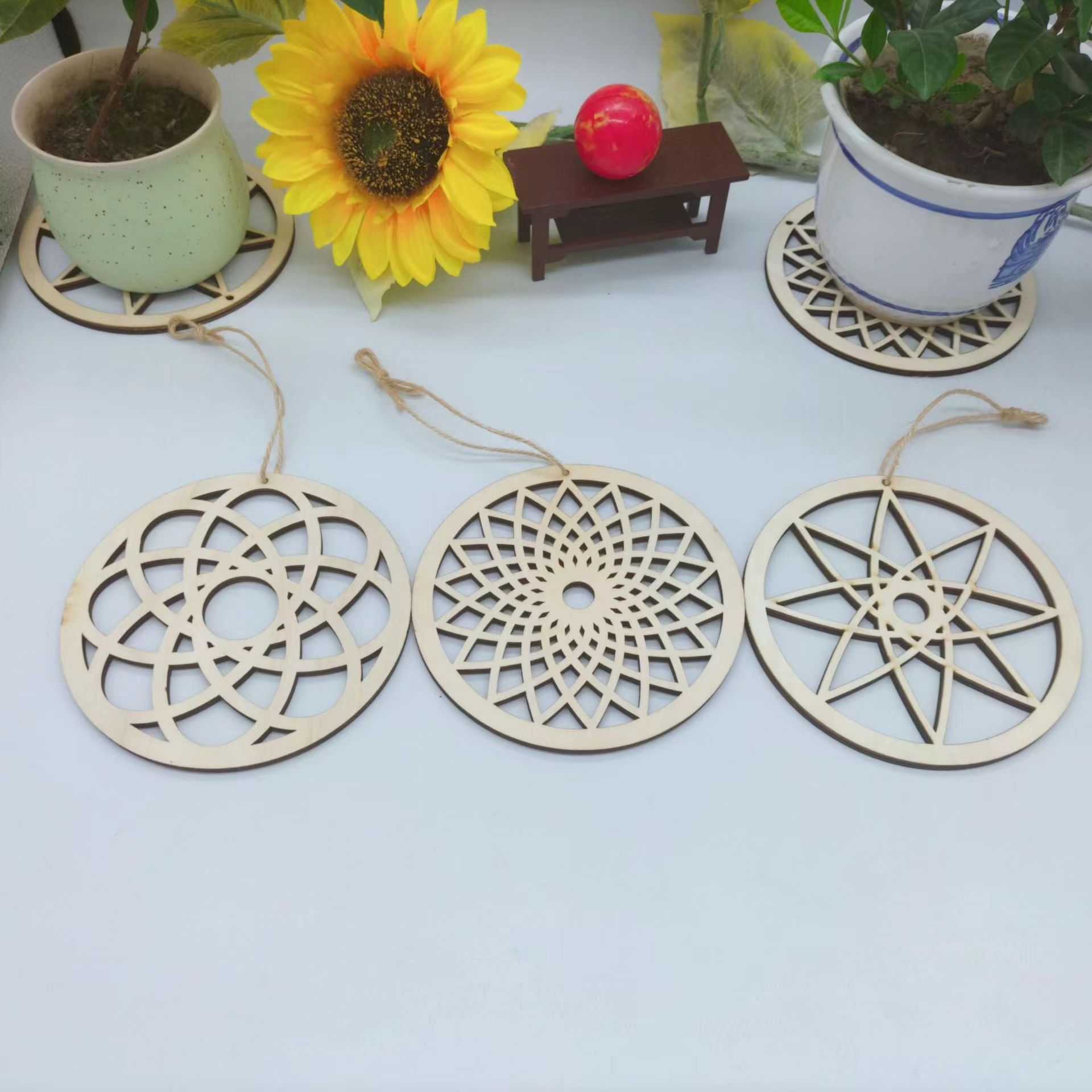 Излученные деревянные подвески DIY ремесла дома украшения деревянные украшения праздничная вечеринка лазерная резка подвеска