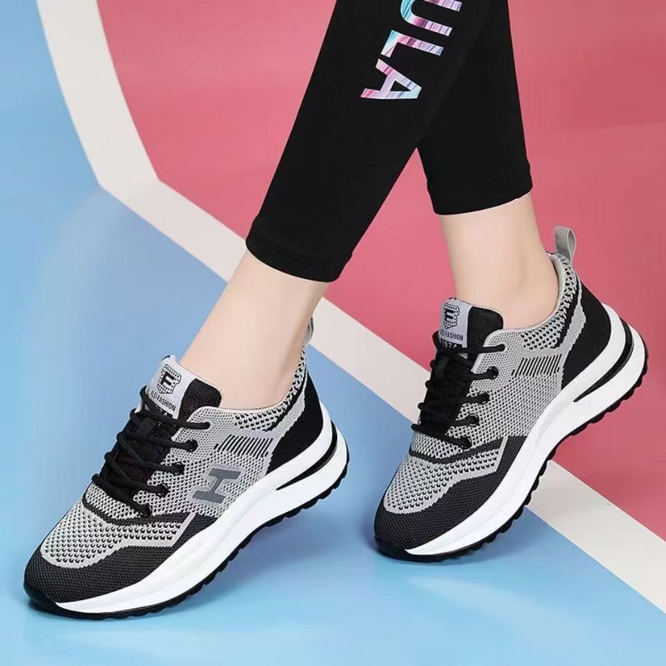Весенне-летние повседневные женские кроссовки из сетчатого трикотажа, дышащие кроссовки на мягкой подошве, оптовая продажа для внешней торговли, модные легкие туфли на низком каблуке