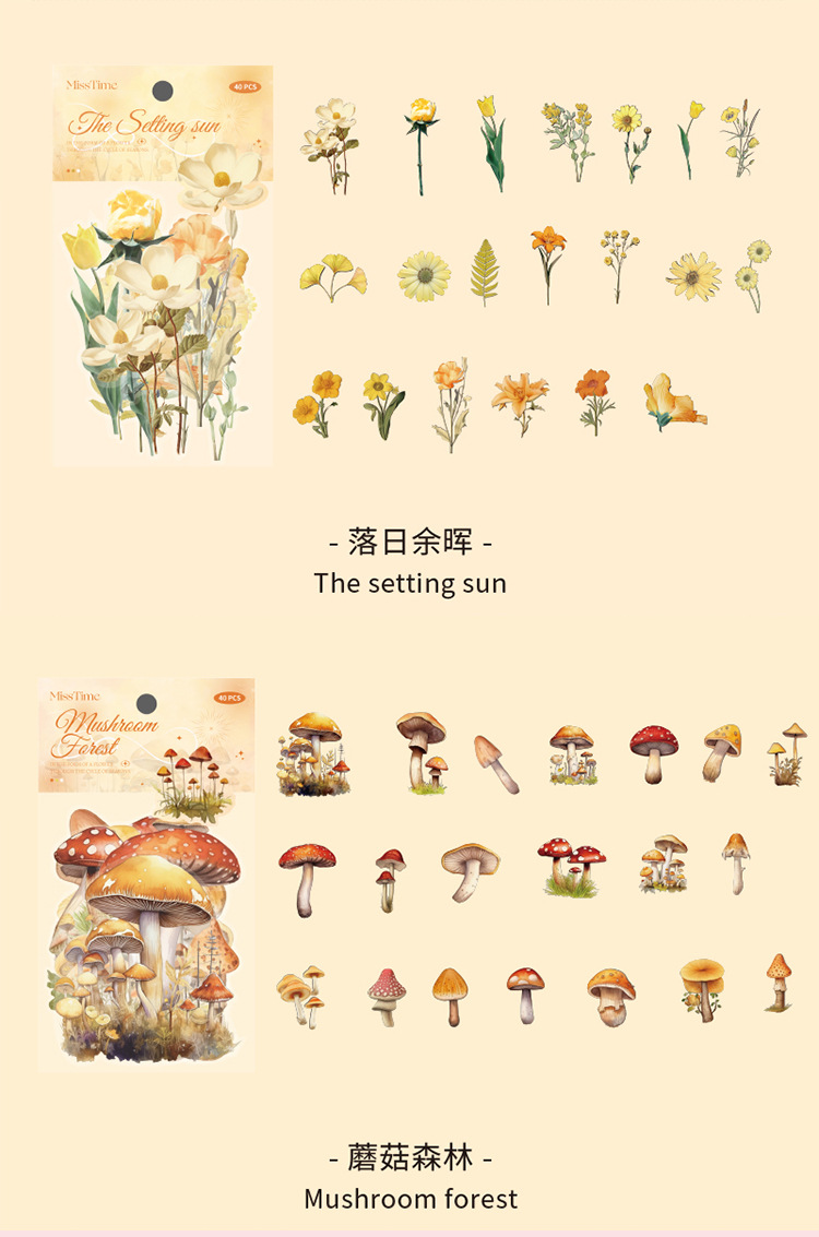 Послесвечение заходящего солнца; Сон Чжунся; Трава камышевка летит; Бай Ю Инша; Персик; Грибной лес