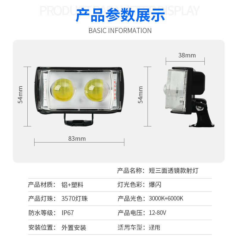 Мотоцикл прожекла короткая трехсторонняя светящаяся фара фары фары фар светодиодные фары