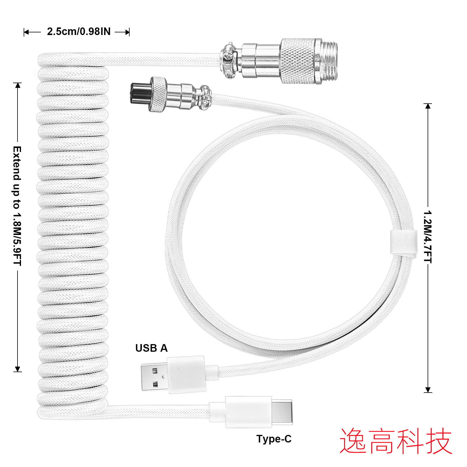 Индивидуальный авиационный кабель-удлинитель для механических клавиатур, спиральный кабель с пружинным механизмом, кастомный кабель, игровой кабель питания.