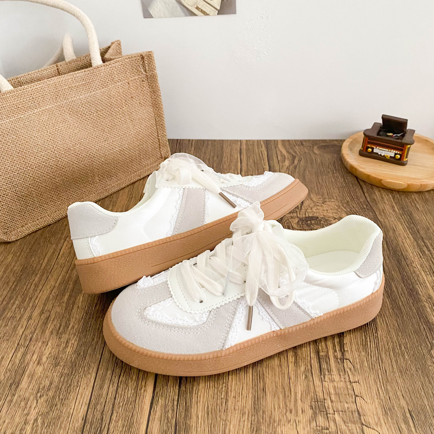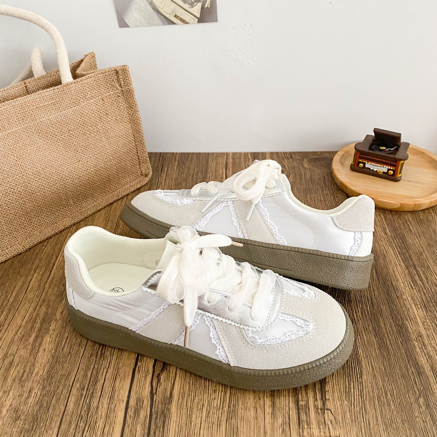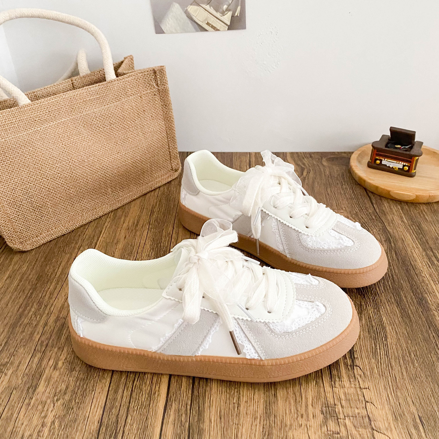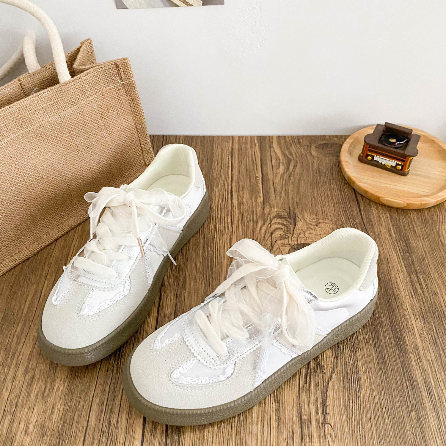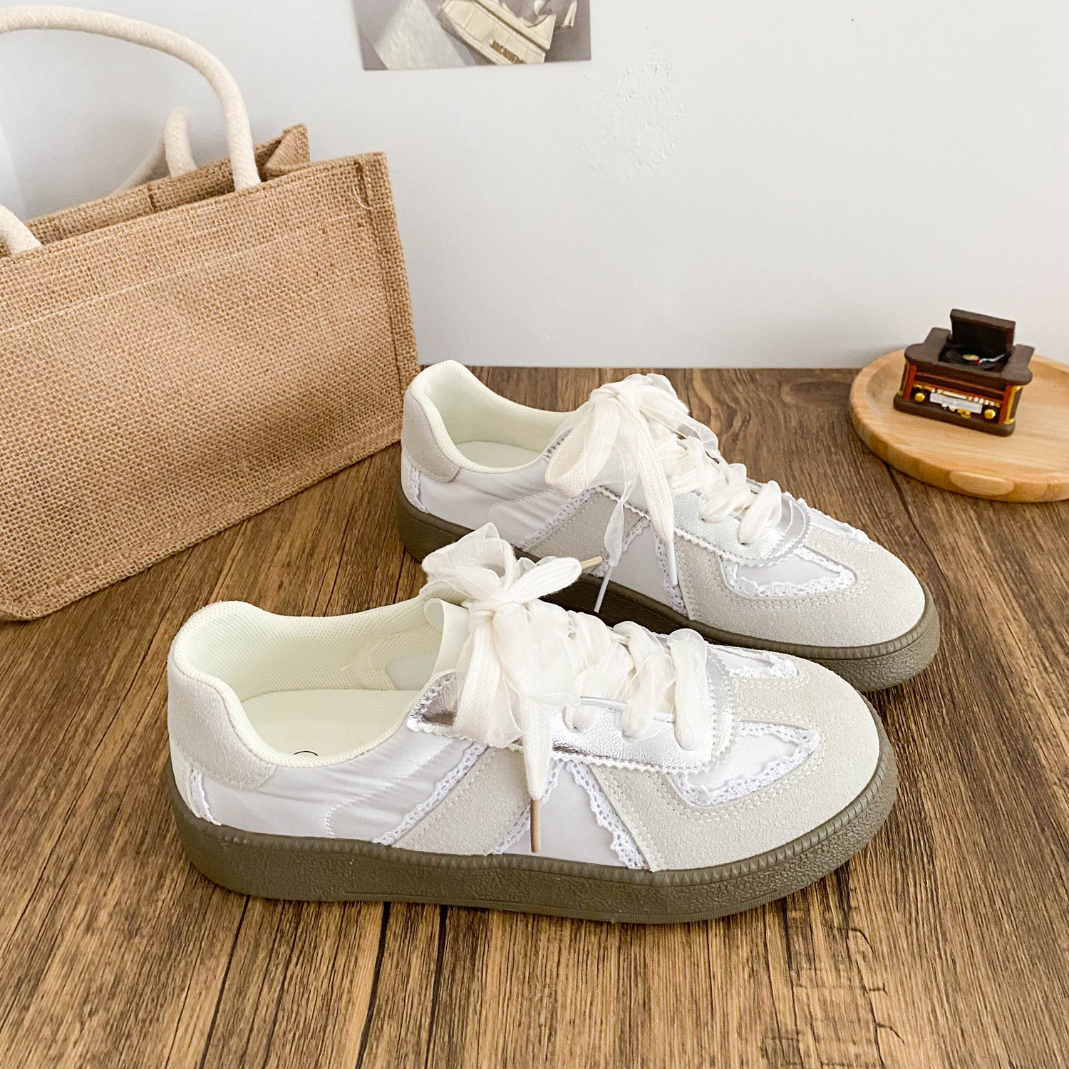 6504 Новый китайский стиль плоской подошвы маленькие белые туфли женский chic2024 новый байк Xiaozhong этические туфли