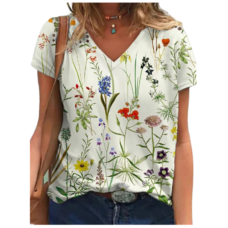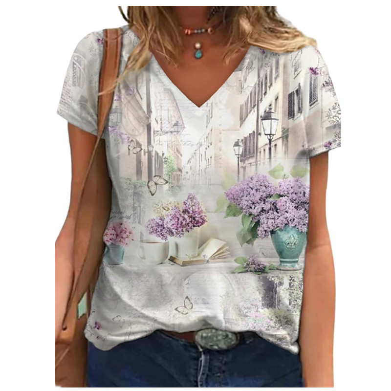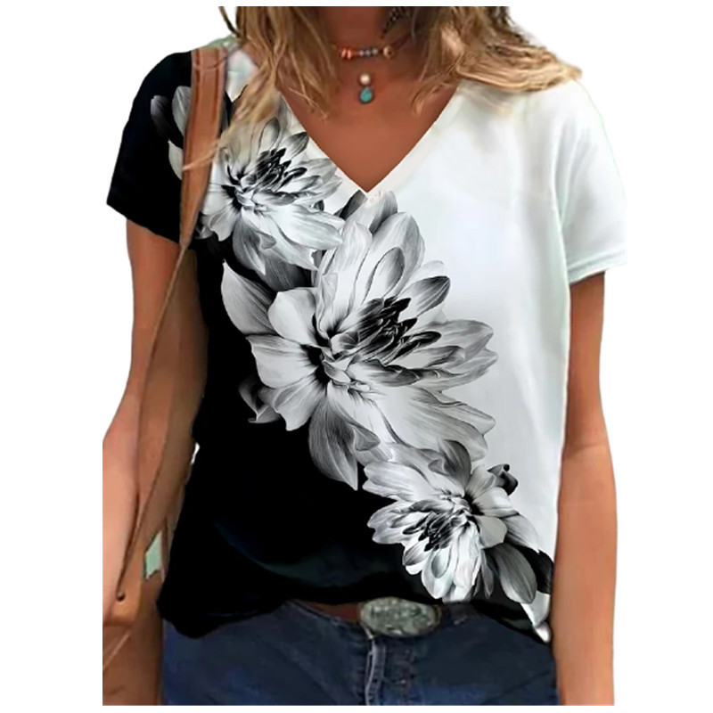2024 лето ebay AliExpress 3D цифровая печать с короткими рукавами V-образным вырезом женская свободная женская футболка