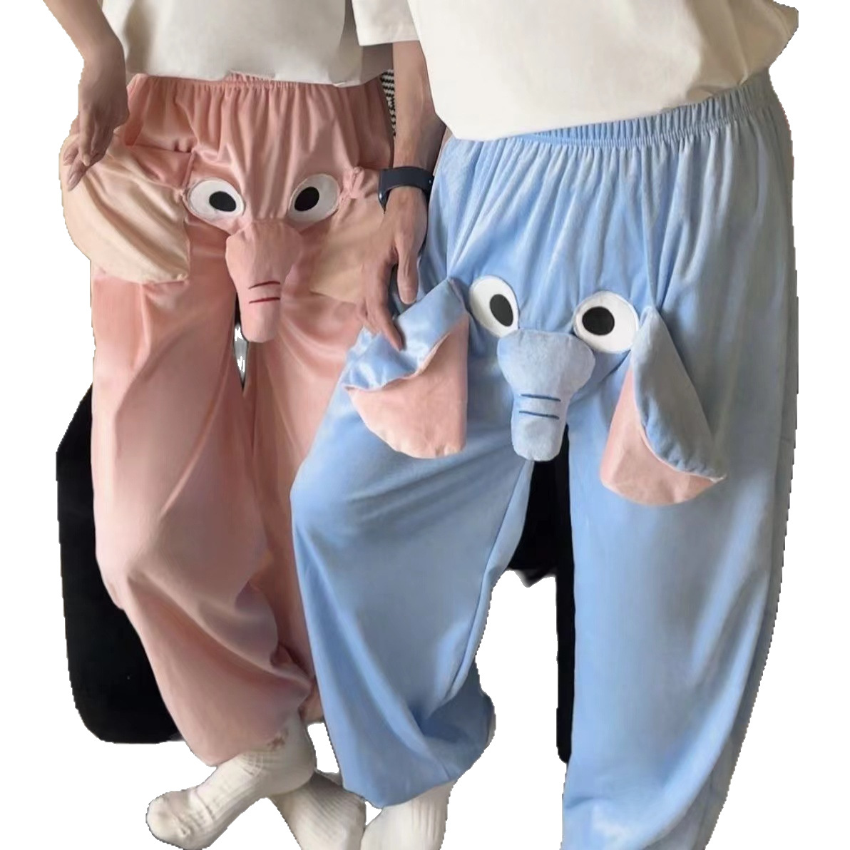 1529#синие брюки со слоном; 1529#Розовые брюки со слоником; 1989 # Фланелевые брюки с рисунком слона, синие; 1989#Фланелевые штаны с рисунком слона, розовые