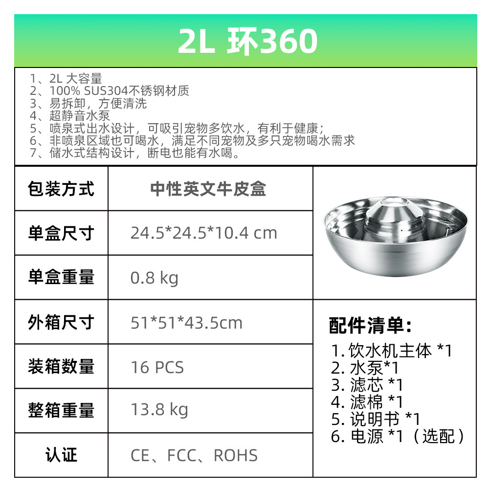 Нержавеющая сталь 2L питьевой воды для домашних животных автоматический циркуляционный фильтрующий элемент для очистки кошачьего питателя для воды взрывает 360 кормушка для воды