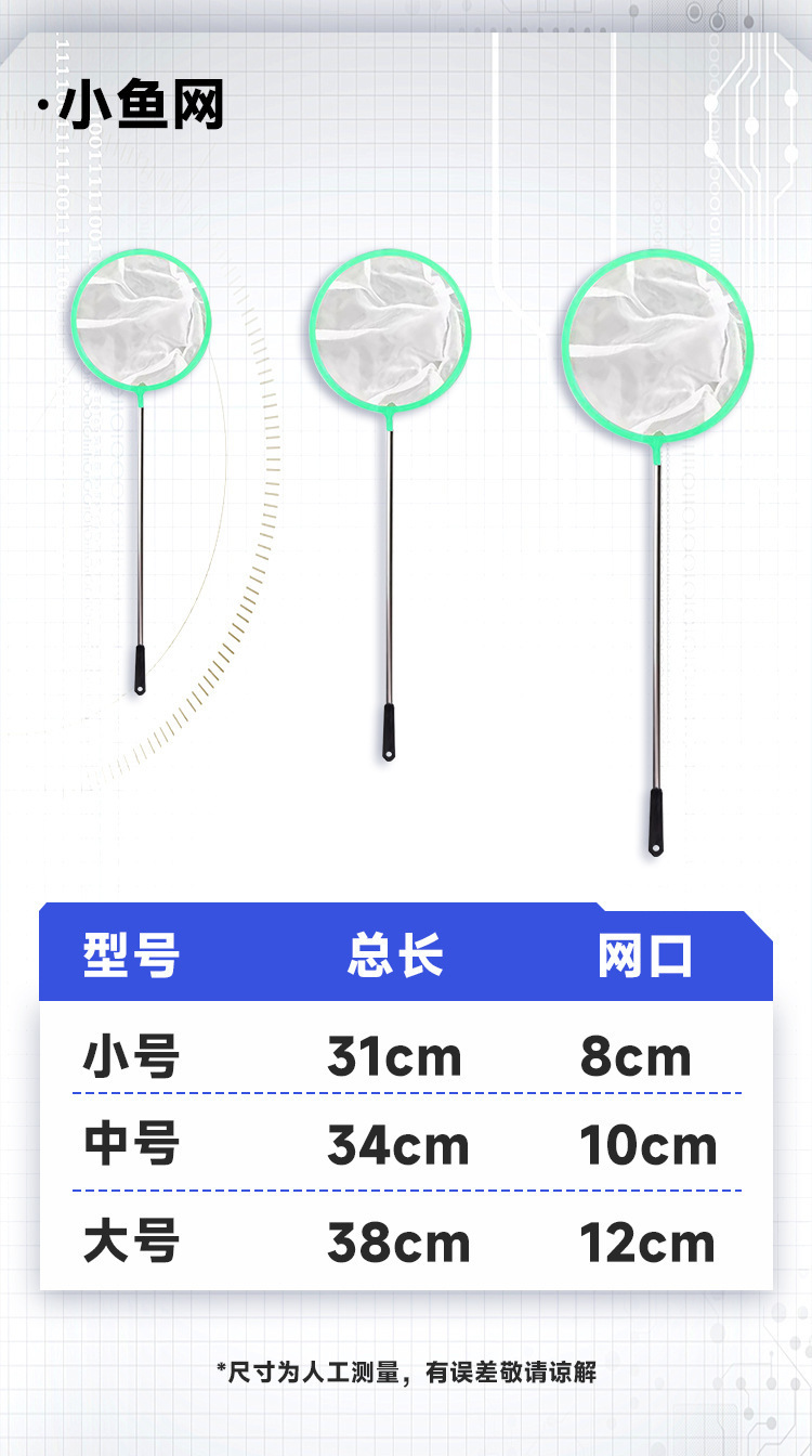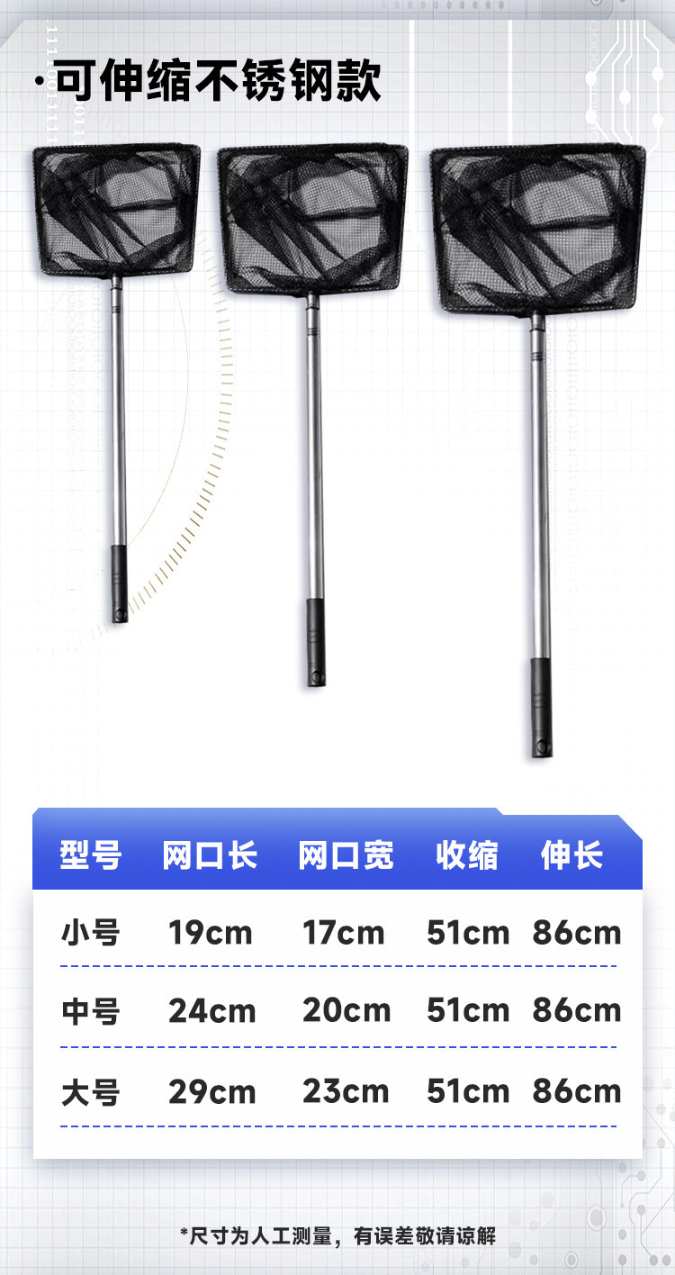 Общая длина рыболовной сетки из нержавеющей стали составляет около 103 см; Средней нержавеющей стали телескопическая рыболовная сетка общей длиной около 100 см; Маленькая круглая рыболовная сеть [случайный цвет]