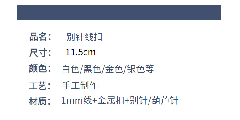 Булавки желтые с золотой нитью (1000 шт/уп); Булавки серебряные нитки (1000 шт/уп); Желтые булавки Black Line (1000 шт/уп); Серебряный штифт Black Line (1000 шт/уп); Латунные штифты Black Line (1000 шт/уп); Черный провод, белые медные штыри (1000 шт./упак.); Пистолет для черной нити, черные булавки (1000 шт/упак.); Пистолет для черной нити, игла из черной тыквы (1000 шт/упак.); Желтые железные булавки White Line (1000 шт/упак.); Оловянный штифт белой линии (1000 шт/упак.); Белый провод, белые медные штыри (1000 шт./упак.); Белая нить, игла из белой меди (1000 шт/уп); Провод белый медный штифт 5см (1000 шт/уп); Латунные штифты White Line (1000 шт/уп); Желтые железные булавки из полиэстера с красной нитью (1000 шт./упак.); Булавки из белой меди из полиэстера с серой нитью (1000 шт./упак.); Полиэстер серая нить белая медная булавка 5см (1000 шт/уп); Белая восковая нить и толстая тыква из белой меди (1000 шт./упак.); Горошка из белой меди с ниткой из белого воска (1000 шт/упак.); Бежевая хлопковая нить и булавки из белой меди (1000 шт/упак.); Бежевая хлопковая нить и игла из белой меди (1000 шт/упак.)