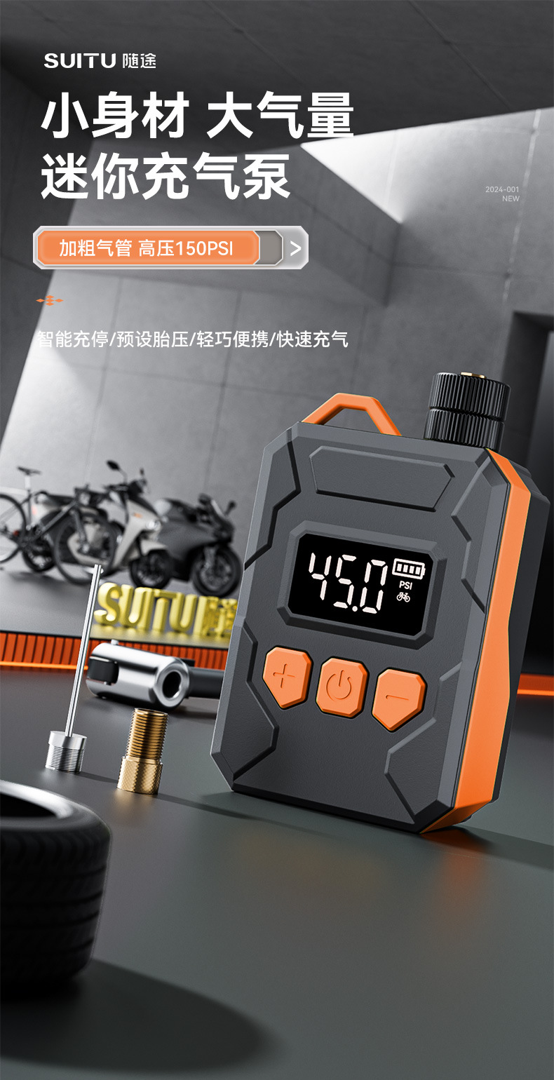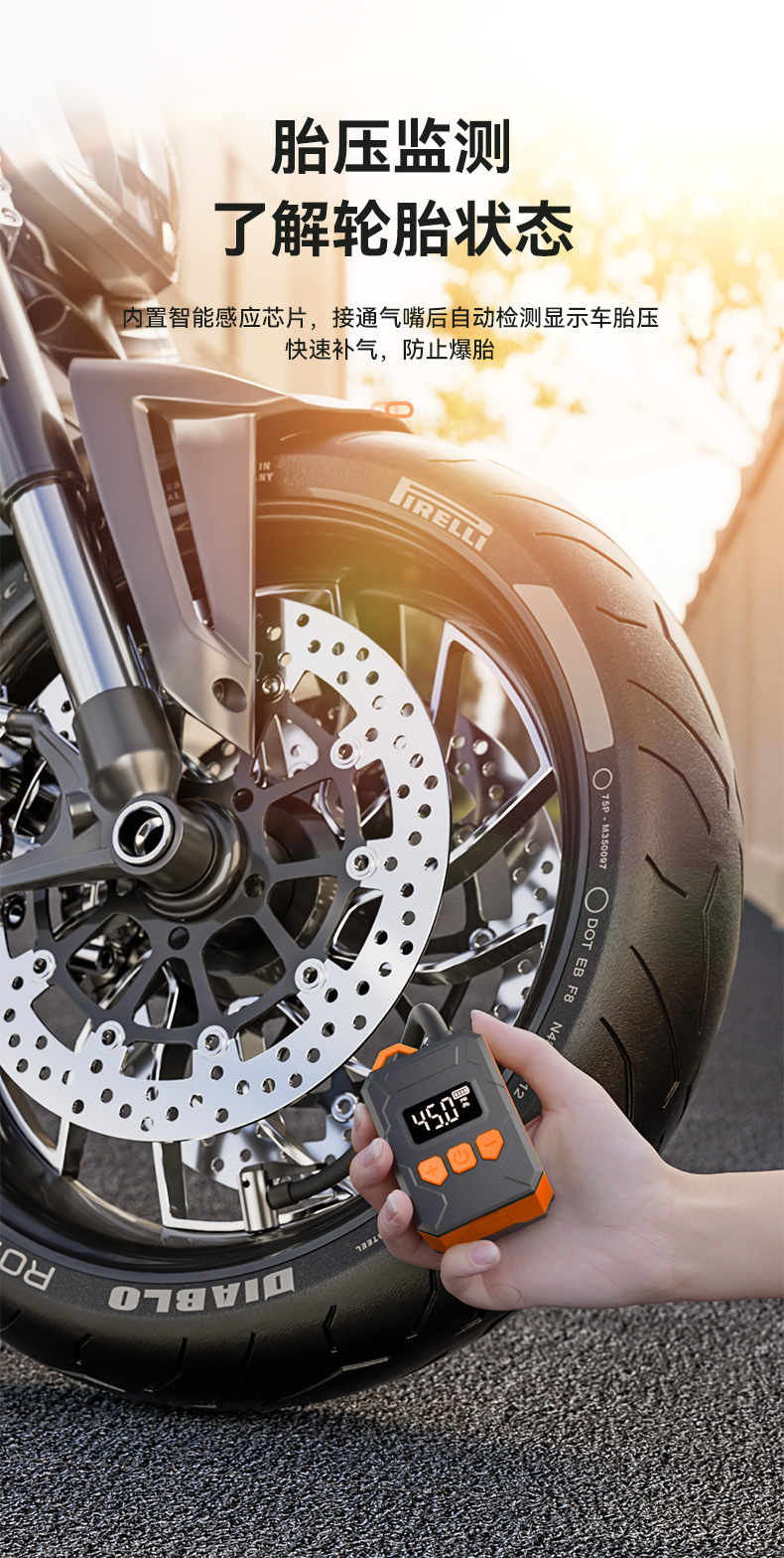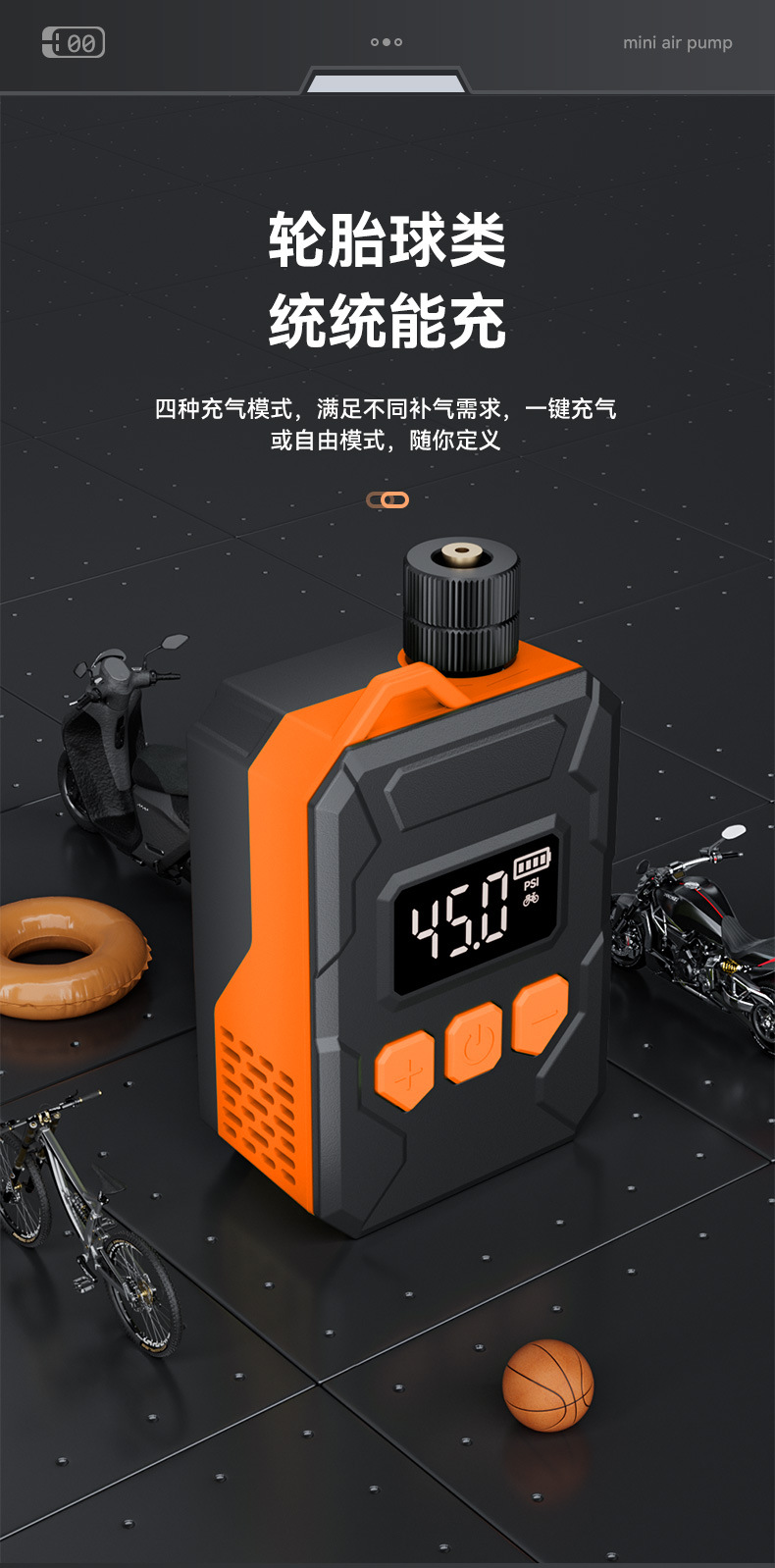 【单位显示】:三种打气模式(自行车、摩托车、球类)