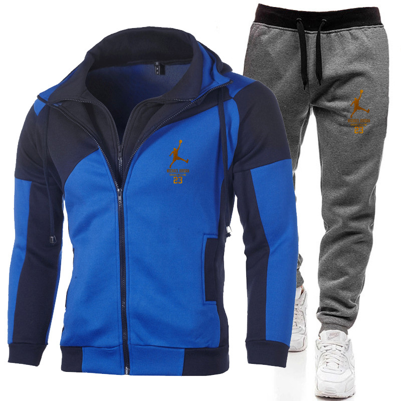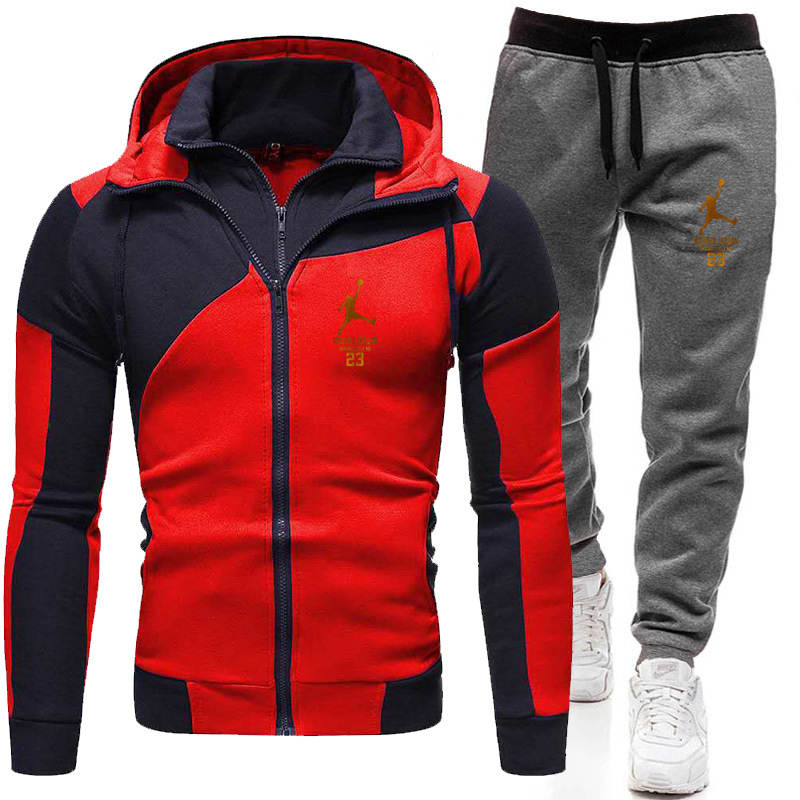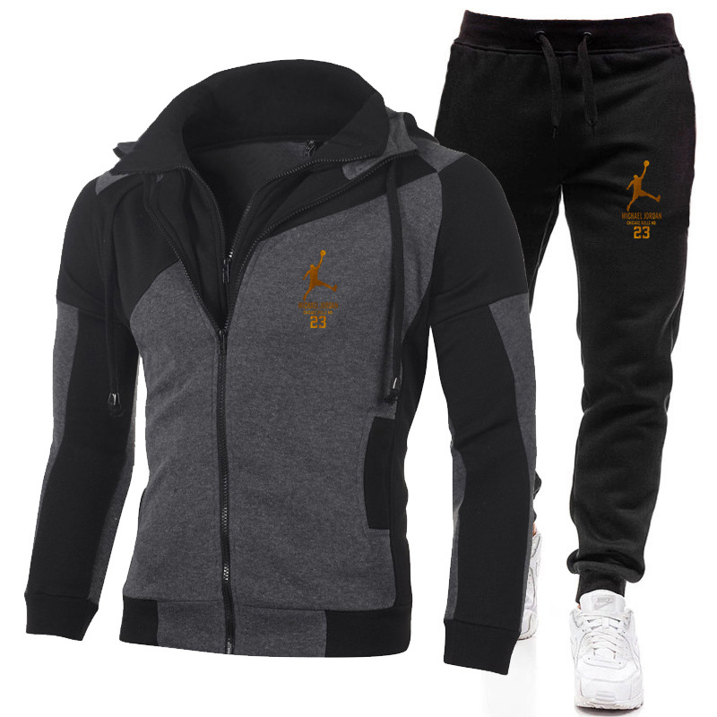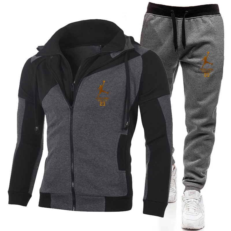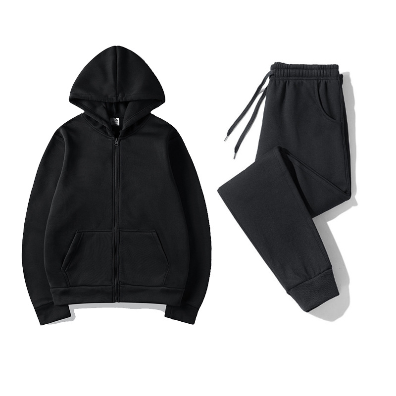 Внешняя торговля осенняя и зимняя рубашка на молнии с капюшоном свитер брюки 2 комплекта спортивной одежды сплошной цвет пара толстовка свитер костюм