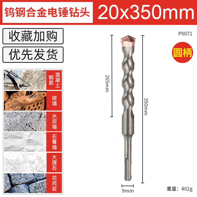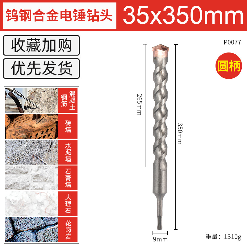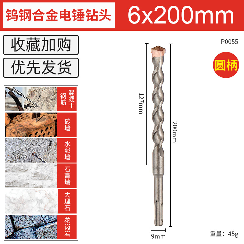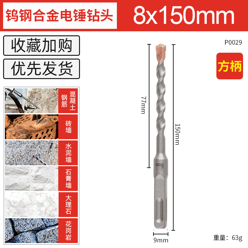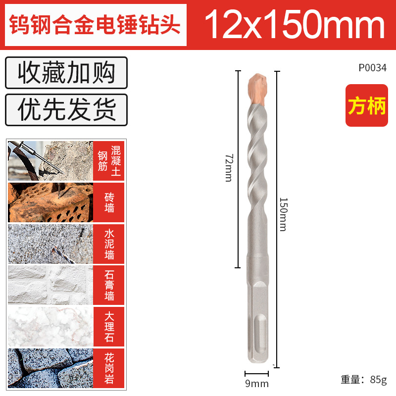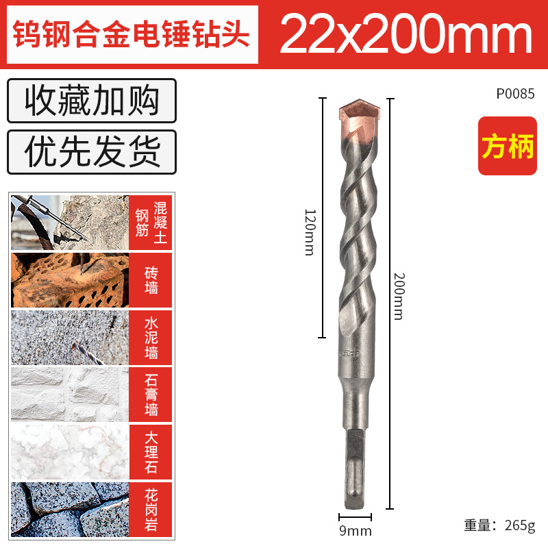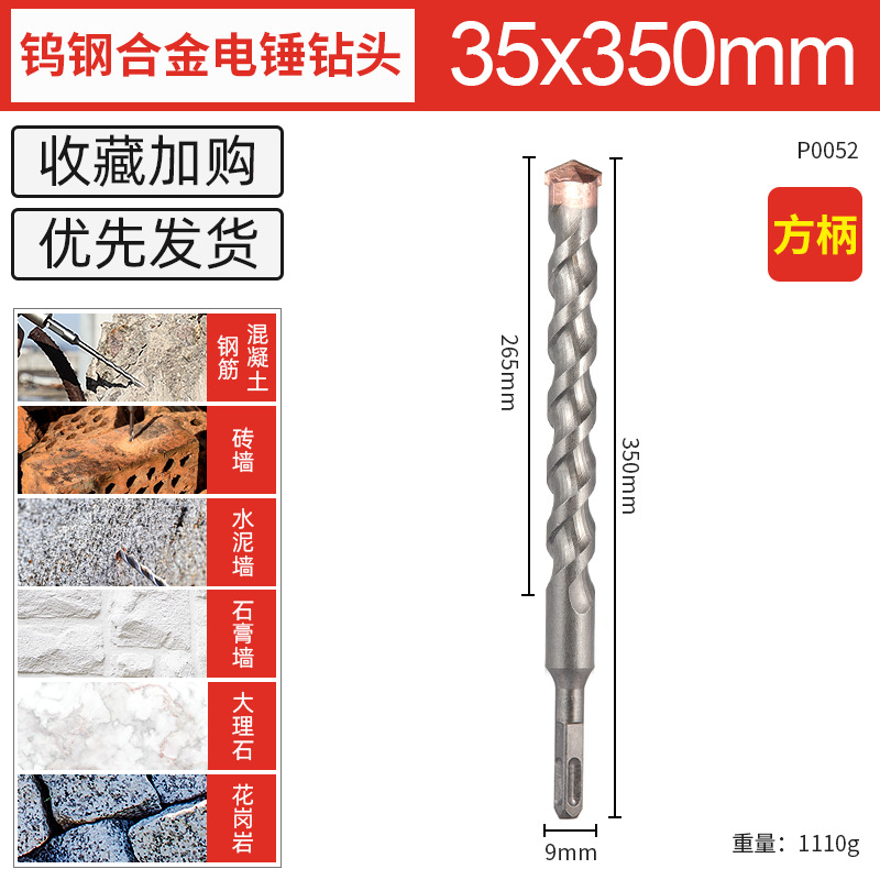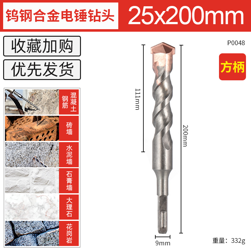 Высокопрочное сверло из вольфрамовой стали с четырьмя зубьями, сверло для перфоратора, удлиненное квадратное хвостовиком для нарезки пазов в бетоне.