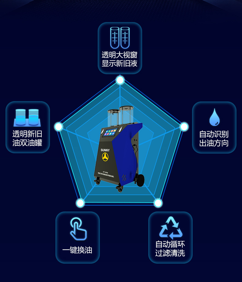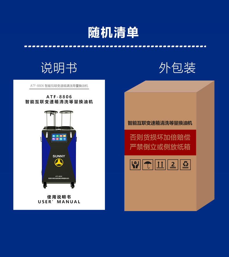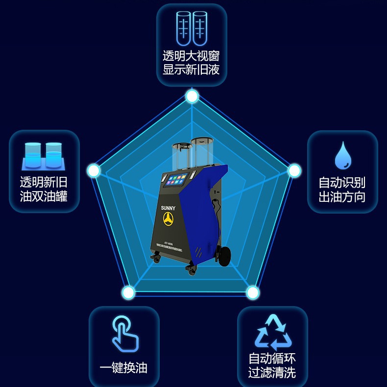 按照自动变速箱养护规定,汽车自动变速器在5~6万公里里程后,需进行油液更换,自动变速箱经过长时间使用,内部变速箱油将会变质,若不能及时更换自动变速箱油,将会引起变速箱工作异常。现市场上的自动变速箱油更换机普遍能实现全自动等量换油,而在实际更换过程中由于变速箱类型异常复杂,操作技师对于选择油品种类、接头拆装位置、接头型号和如何正确查看变速箱油量等技术上参差不齐,导致一些不专业操作会对变速箱损害带来隐患。现我公司最新研发的ATF-8806L自动变速箱换油机,拥有养护SOP标准流程、在线点检、精准的查询功能、0压力换油功能、低压力快速换油功能,换油率可接近100%,设备的更换等量精度控制来保障汽车自动变速器新旧油的更换质量,设备全自动运行, 自动识别装置自动识别变速器进出油方向,操作人性化。选择ATF-8806L是您明智的选择,ATF-8806L是您深化养护的得力助手。