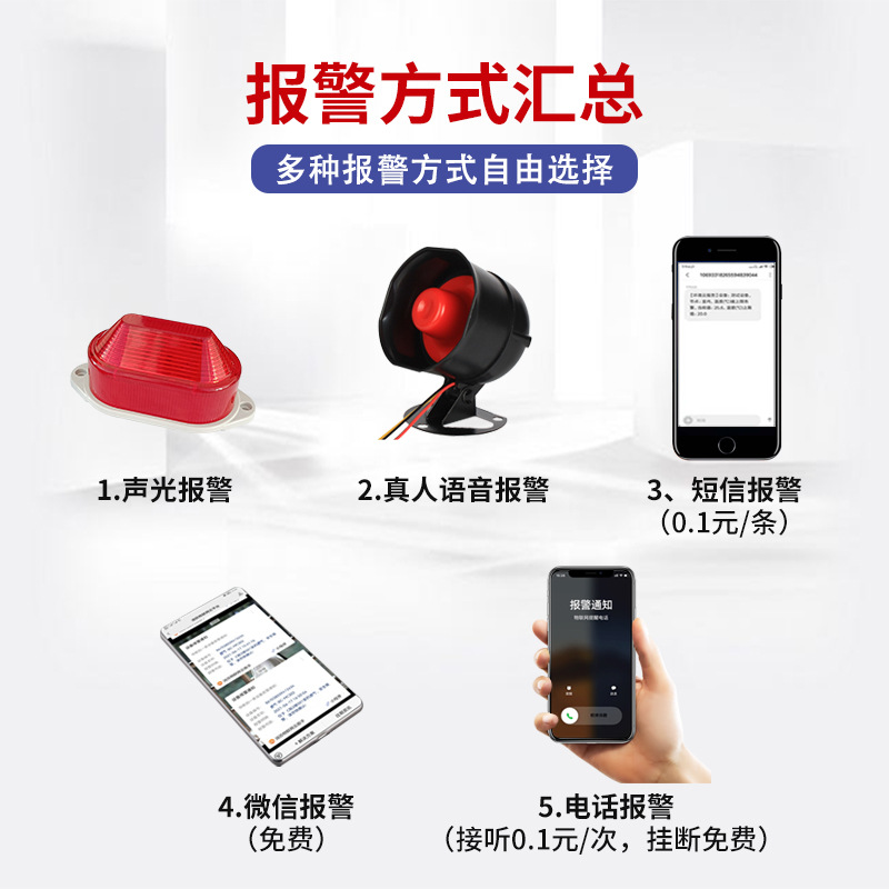 Стандартная версия (небольшая); Временная версия (небольшая); Стандартная версия (большая); Временная версия (большая); Стандартная версия (водонепроницаемый тип); Временная версия (водонепроницаемый); Увеличение внешней температуры и влажности; Добавлена связь RS485; Добавлена функция хранения диска U; Увеличение управления реле; Добавлена звуковая и световая сигнализация; Добавлена живая голосовая сигнализация; Добавлена сигнализация по телефону, VX, SMS; Добавлена связь 4G; Добавлена связь WIFI; Добавлена связь LoRa; Добавлена связь Ethernet