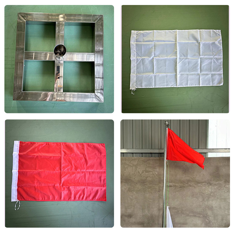 Красный и белый подъемный флагшток; Основание флагштока; Флагшток; Красный флаг; Белый флаг